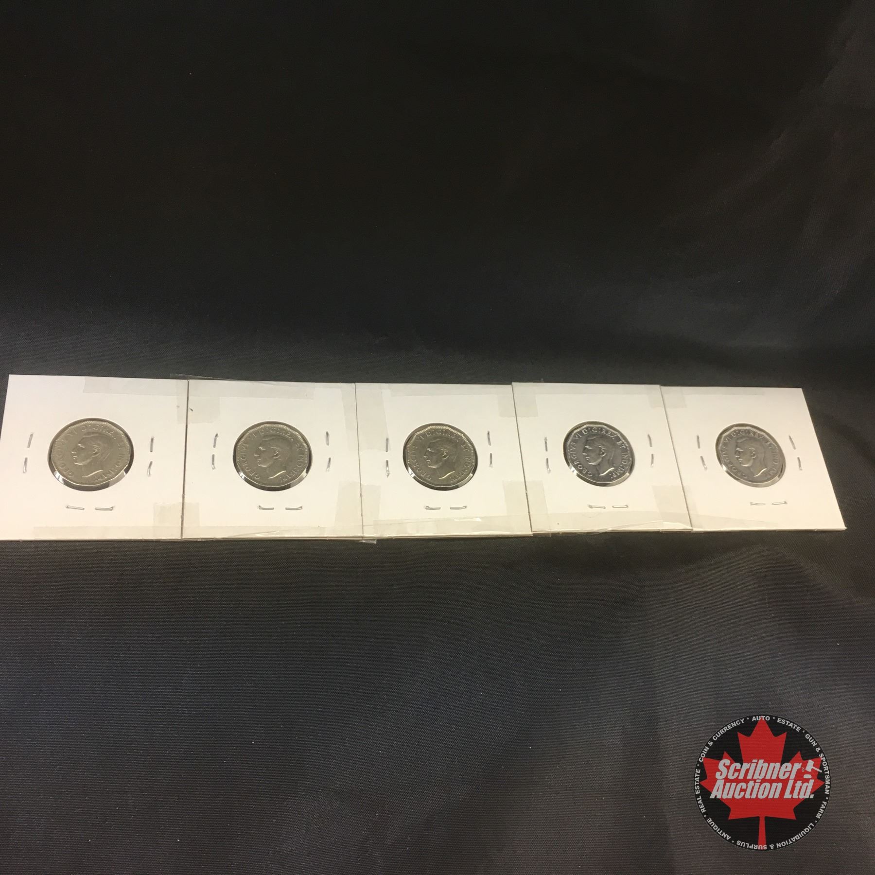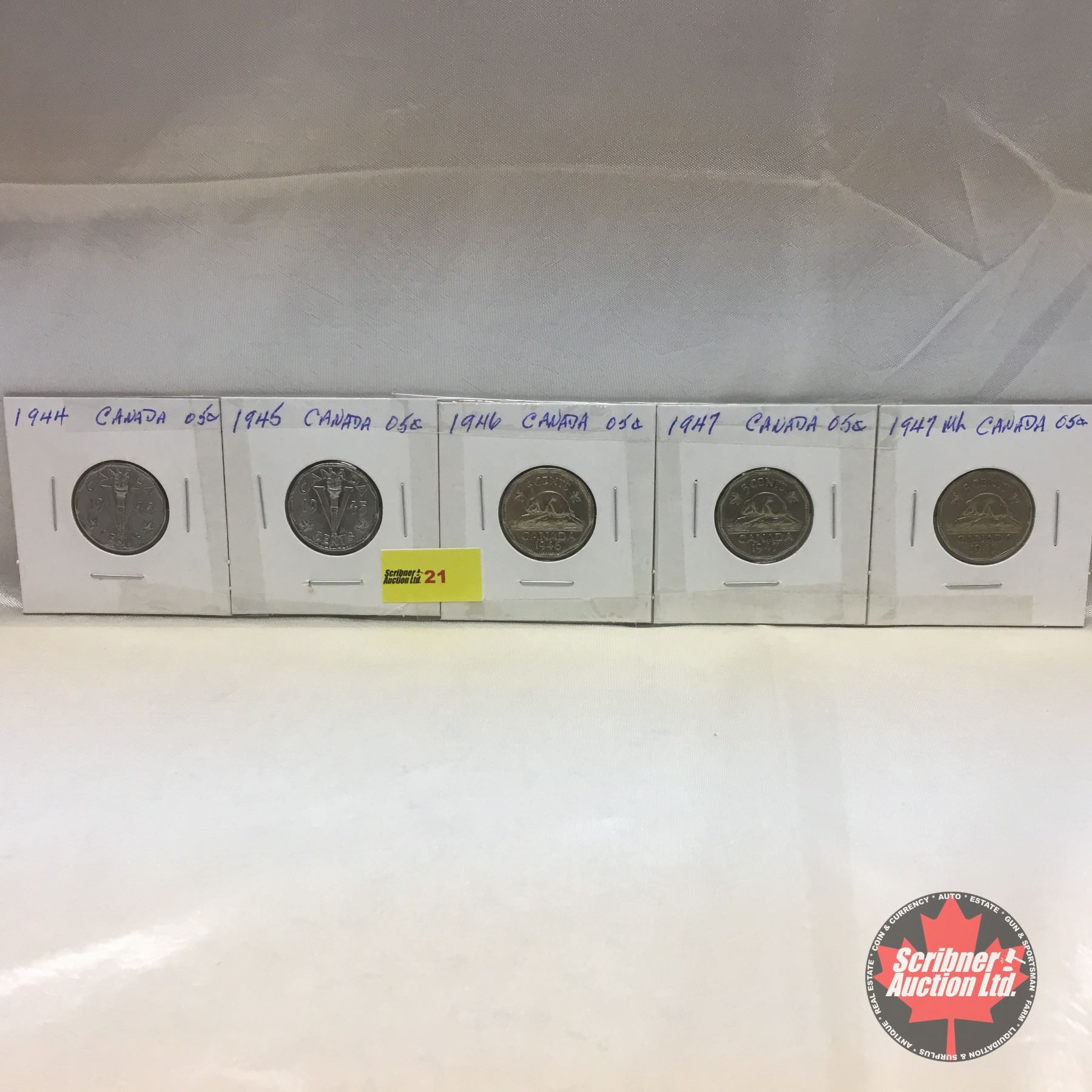 Canada Five Cent - Strip of 5: 1944; 1945; 1946; 1947; 1947ML