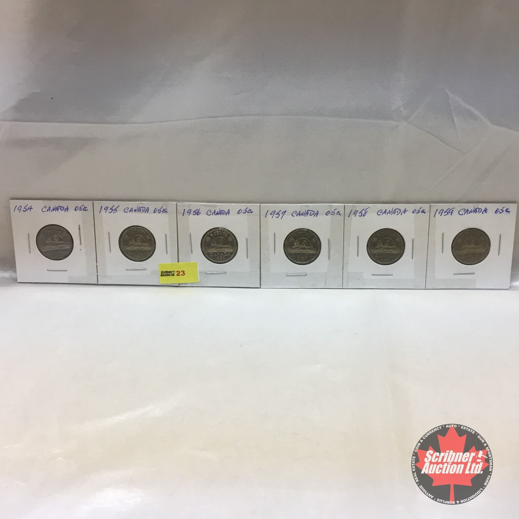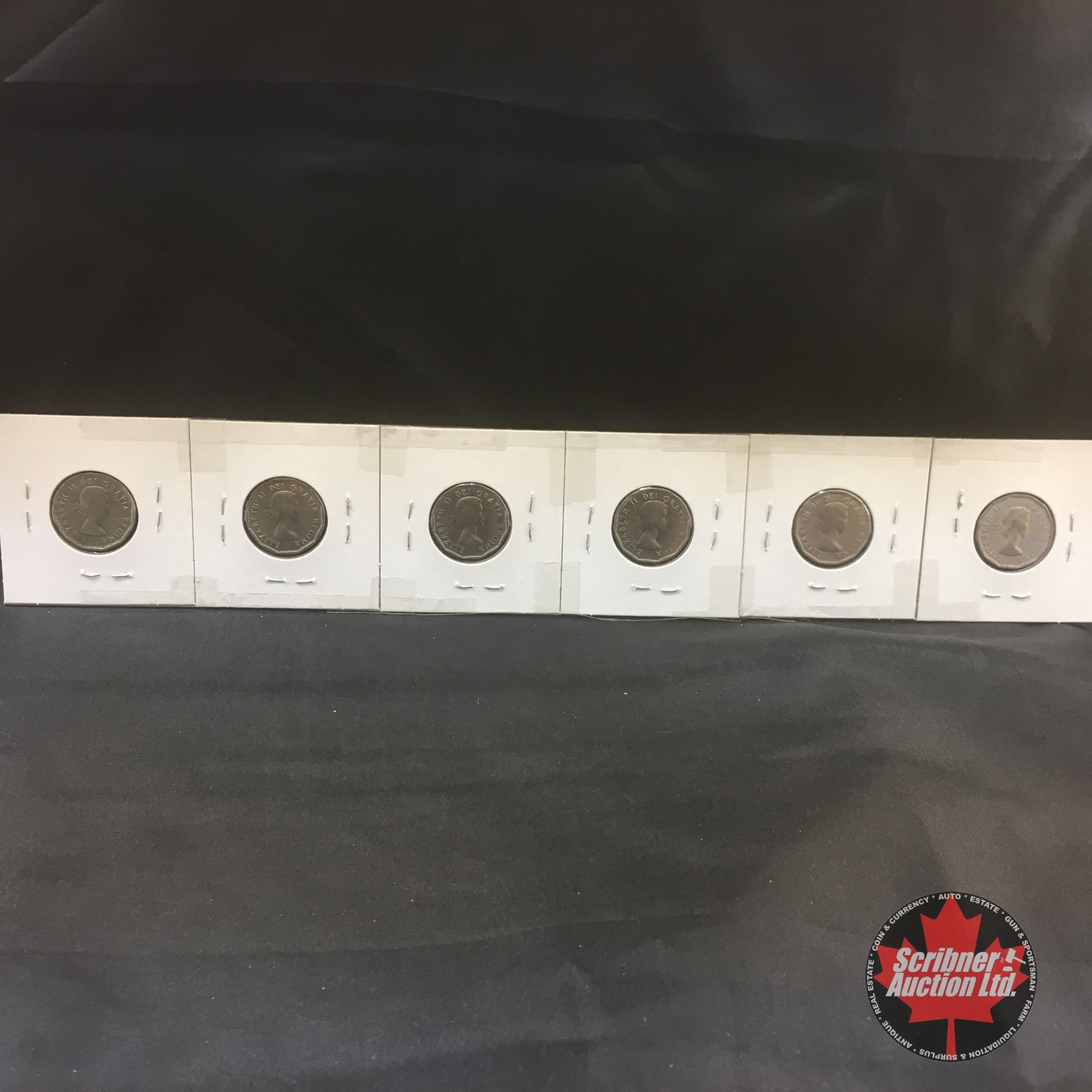 Canada Five Cent - Strip of 6: 1954; 1955; 1956; 1957; 1958; 1959