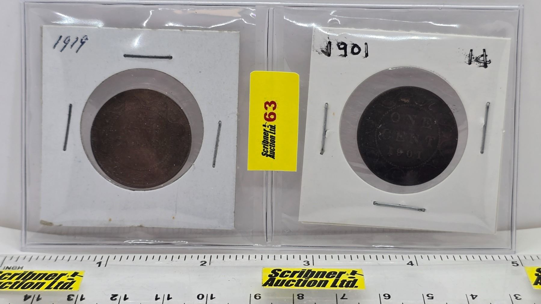 Canada Large Cent (2): 1901; 1919 (SEE PICS!) (Listing & Descriptions are a GUIDE ONLY and are subject to changes, errors, additions or deletions. Please use the provided pictures to satisfy yourself to the Condition and/or Grades. Please Read & Understand All Terms & Conditions for this Auction Sale.)