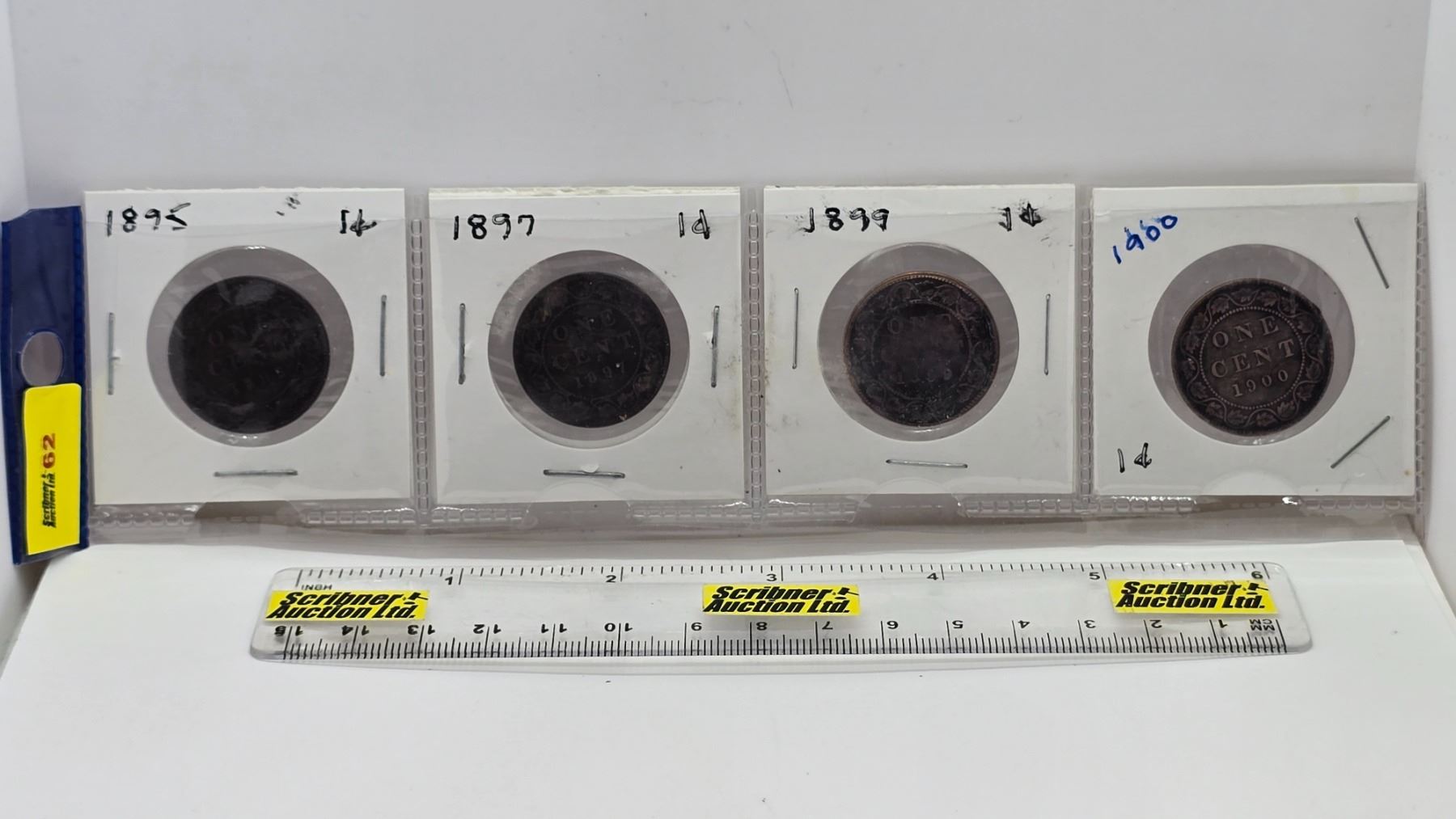 Canada Large Cent (4): 1895; 1897; 1899; 1900 (SEE PICS!) (Listing & Descriptions are a GUIDE ONLY and are subject to changes, errors, additions or deletions. Please use the provided pictures to satisfy yourself to the Condition and/or Grades. Please Read & Understand All Terms & Conditions for this Auction Sale.)