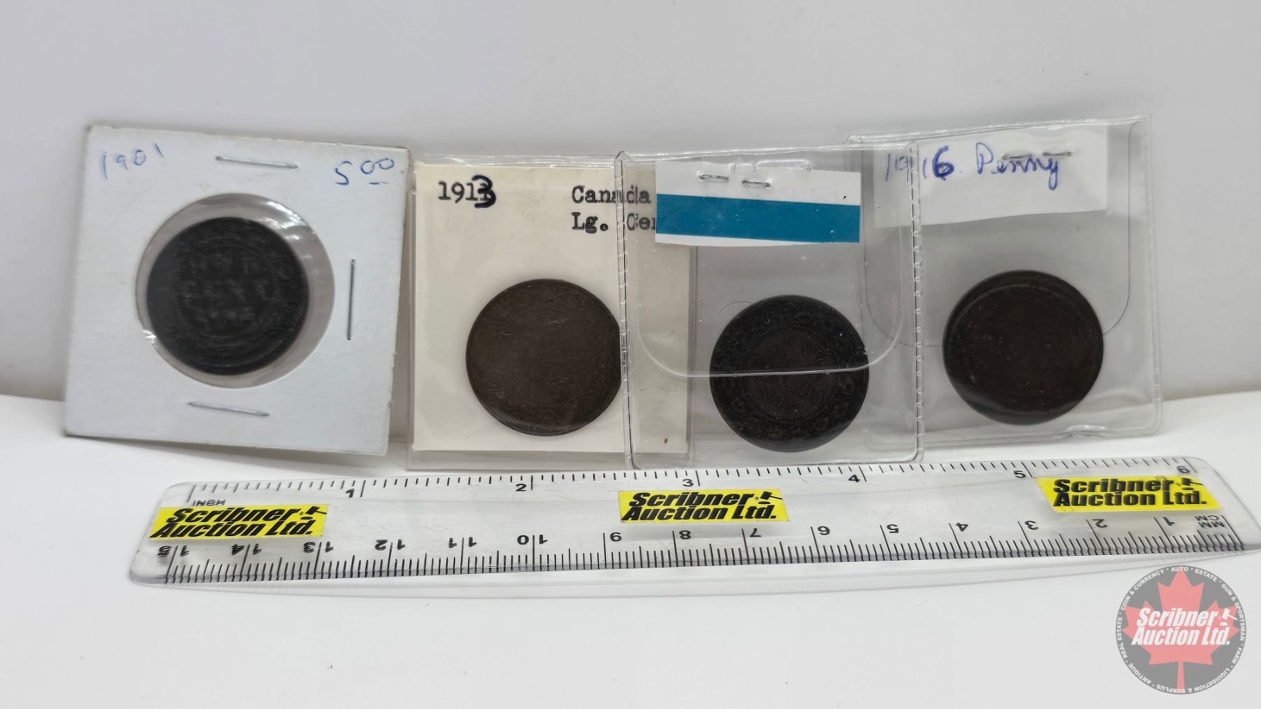 Canada Large Cent (4): 1901; 1913; 1915; 1916 (SEE PICS!)