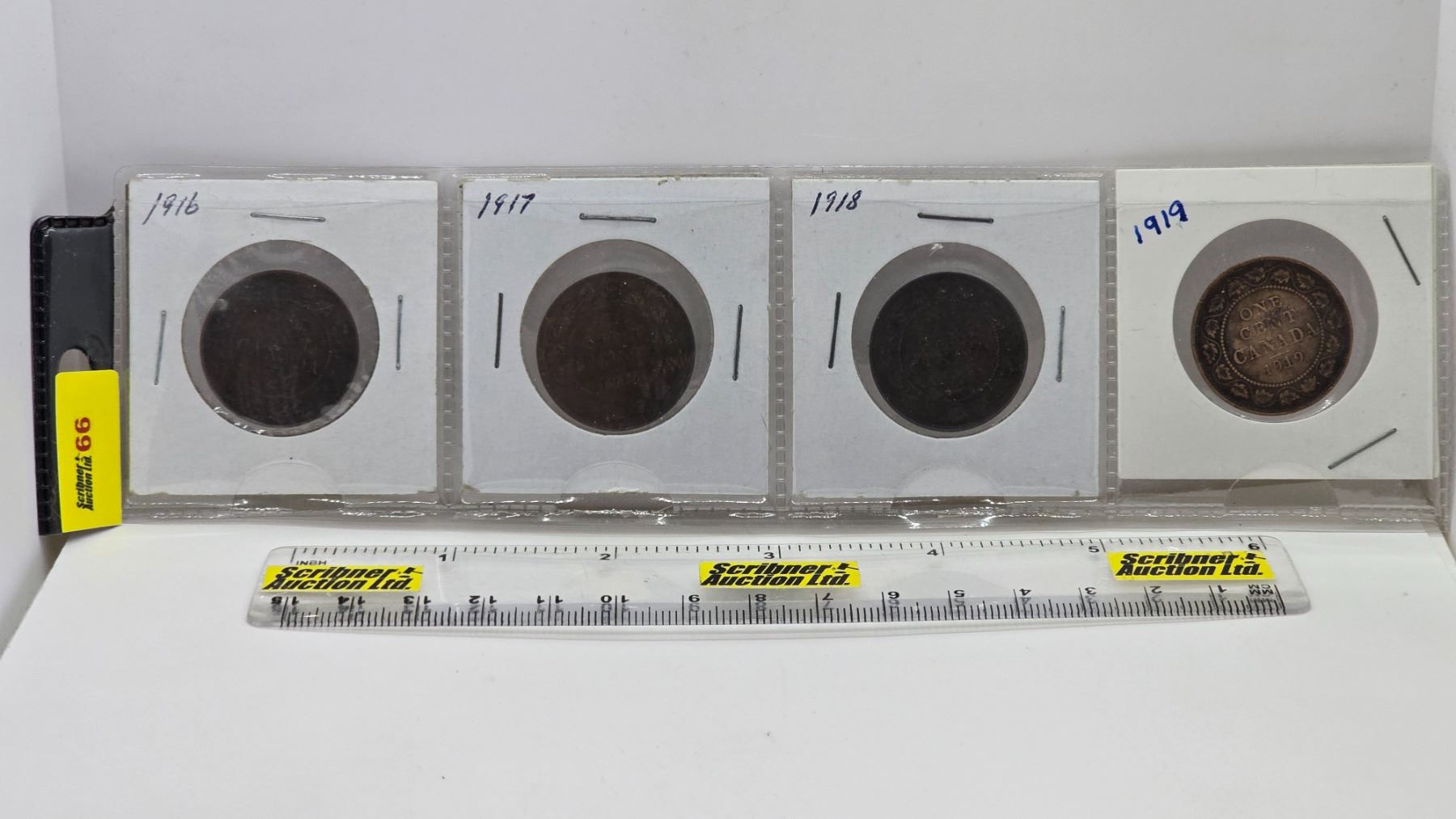 Canada Large Cent (4): 1916; 1917; 1918; 1919 (SEE PICS!) (Listing & Descriptions are a GUIDE ONLY and are subject to changes, errors, additions or deletions. Please use the provided pictures to satisfy yourself to the Condition and/or Grades. Please Read & Understand All Terms & Conditions for this Auction Sale.)