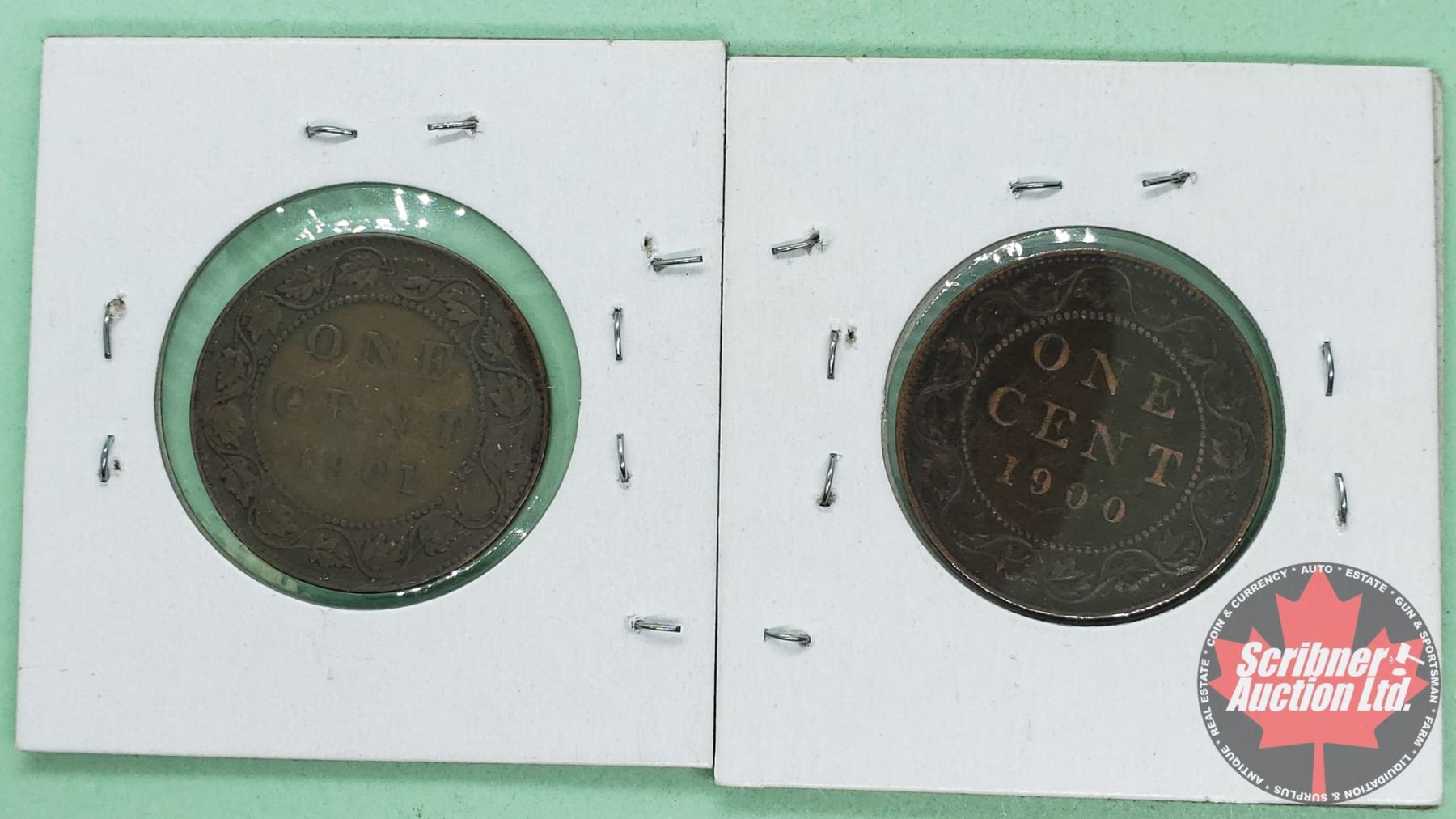 Canada Large Cent - Strip of 2: 1900H; 1901