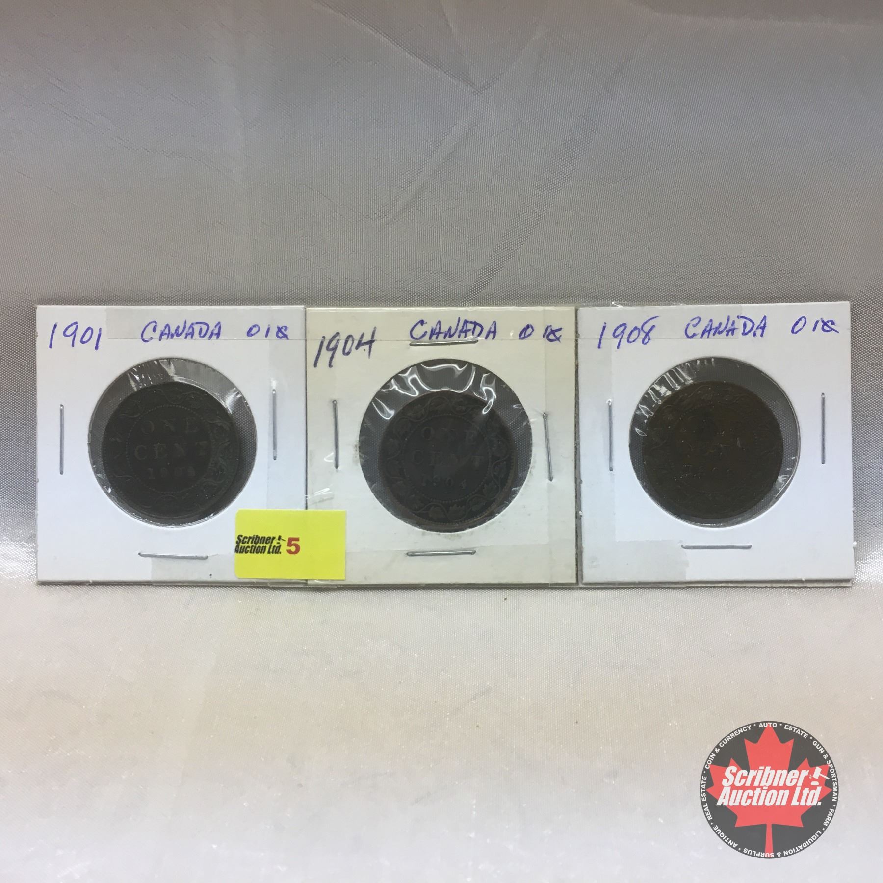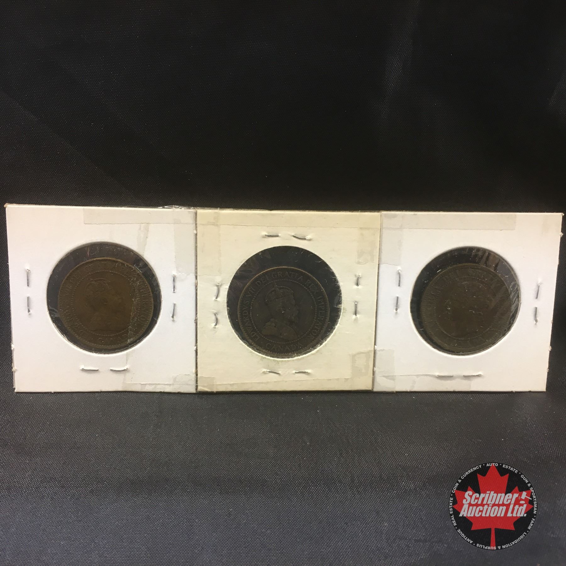 Canada Large Cent - Strip of 3: 1901; 1904; 1908