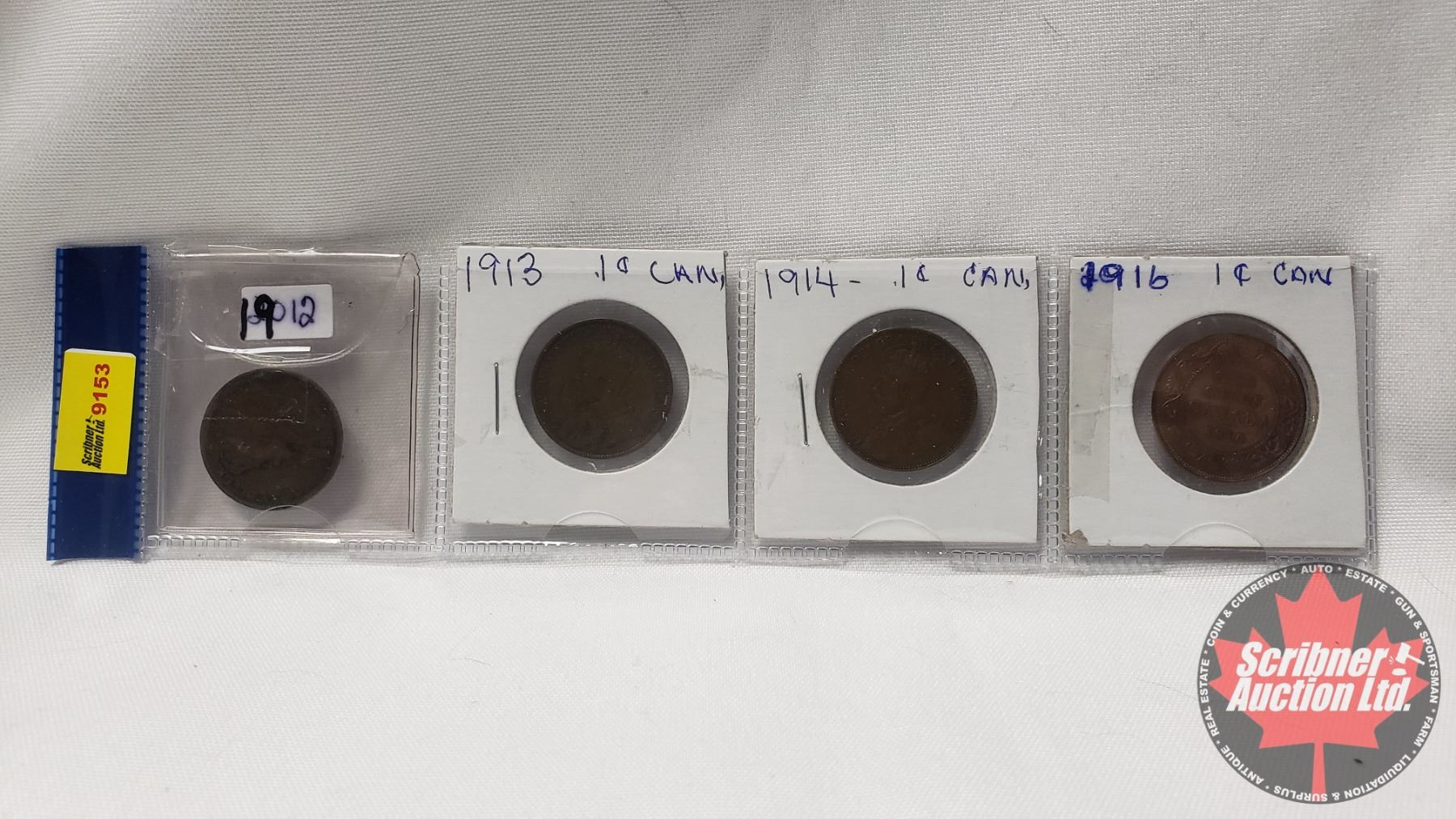 Canada Large Cent - Strip of 4: 1912; 1913; 1914; 1916