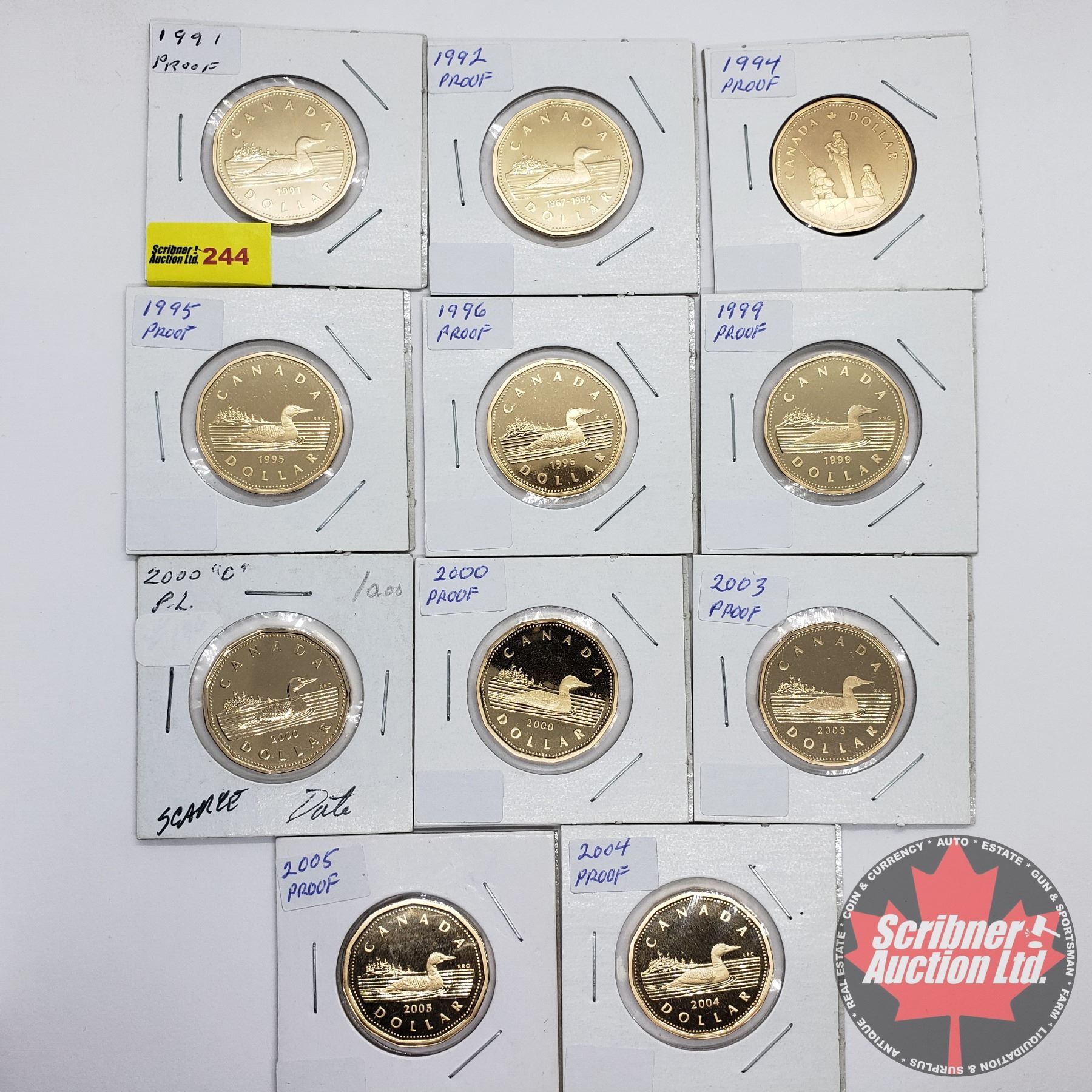 Canada Loonie Proofs (11): 1991; 1992; 1994; 1995; 1996; 1999; 2000; 2000; 2003; 2004; 2005