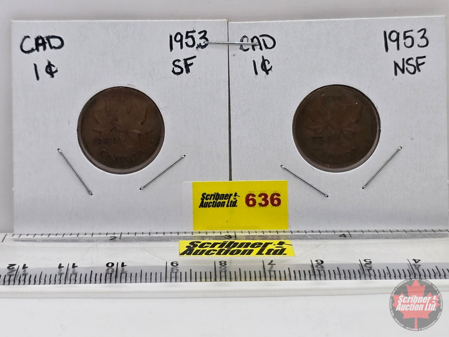 Canada One Cent (2): 1953SF ; 1953NSF (SEE PICS!) (Listing & Descriptions are a GUIDE ONLY and are subject to changes, errors, additions or deletions. Please use the provided pictures to satisfy yourself to the Condition and/or Grades. Please Read & Understand All Terms & Conditions for this Auction Sale.)