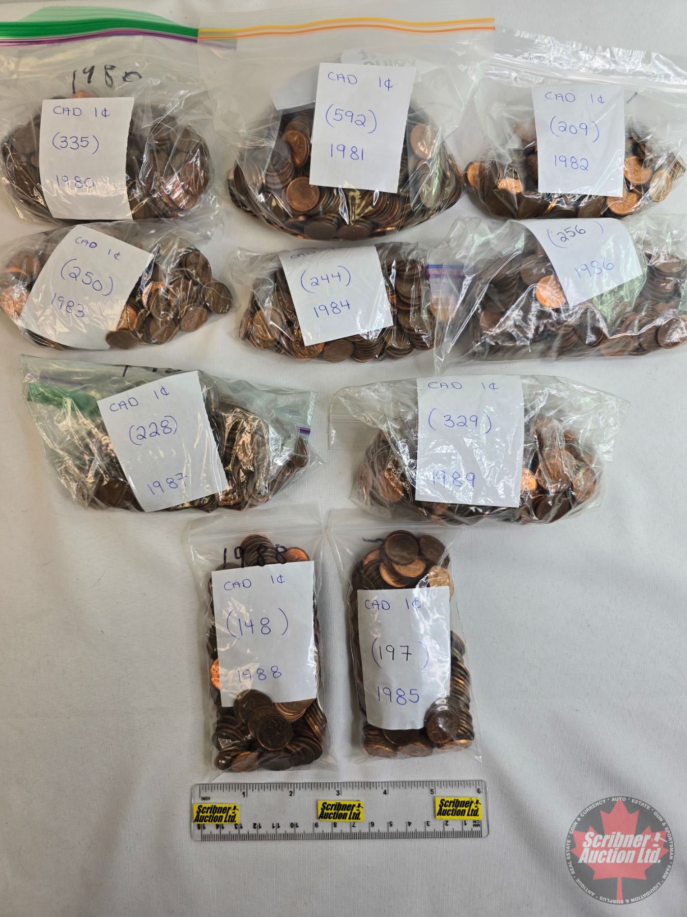 Canada One Cent Collection (2780+) : 1980's (SEE PICS!) (Listing & Descriptions are a GUIDE ONLY and are subject to changes, errors, additions or deletions. Please use the provided pictures to satisfy yourself to the Condition and/or Grades. Please Read & Understand All Terms & Conditions for this Auction Sale.)
