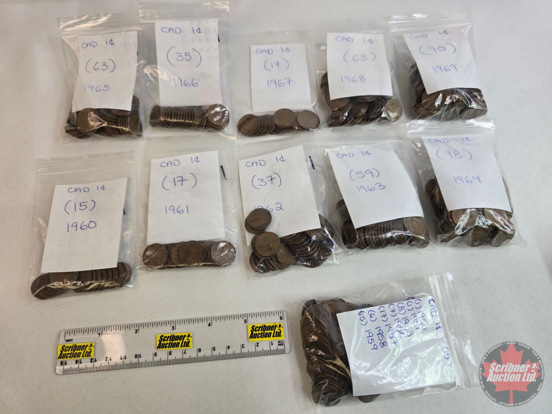 Canada One Cent Collection (540+) : 1950's & 1960's (SEE PICS!) (Listing & Descriptions are a GUIDE ONLY and are subject to changes, errors, additions or deletions. Please use the provided pictures to satisfy yourself to the Condition and/or Grades. Please Read & Understand All Terms & Conditions for this Auction Sale.)