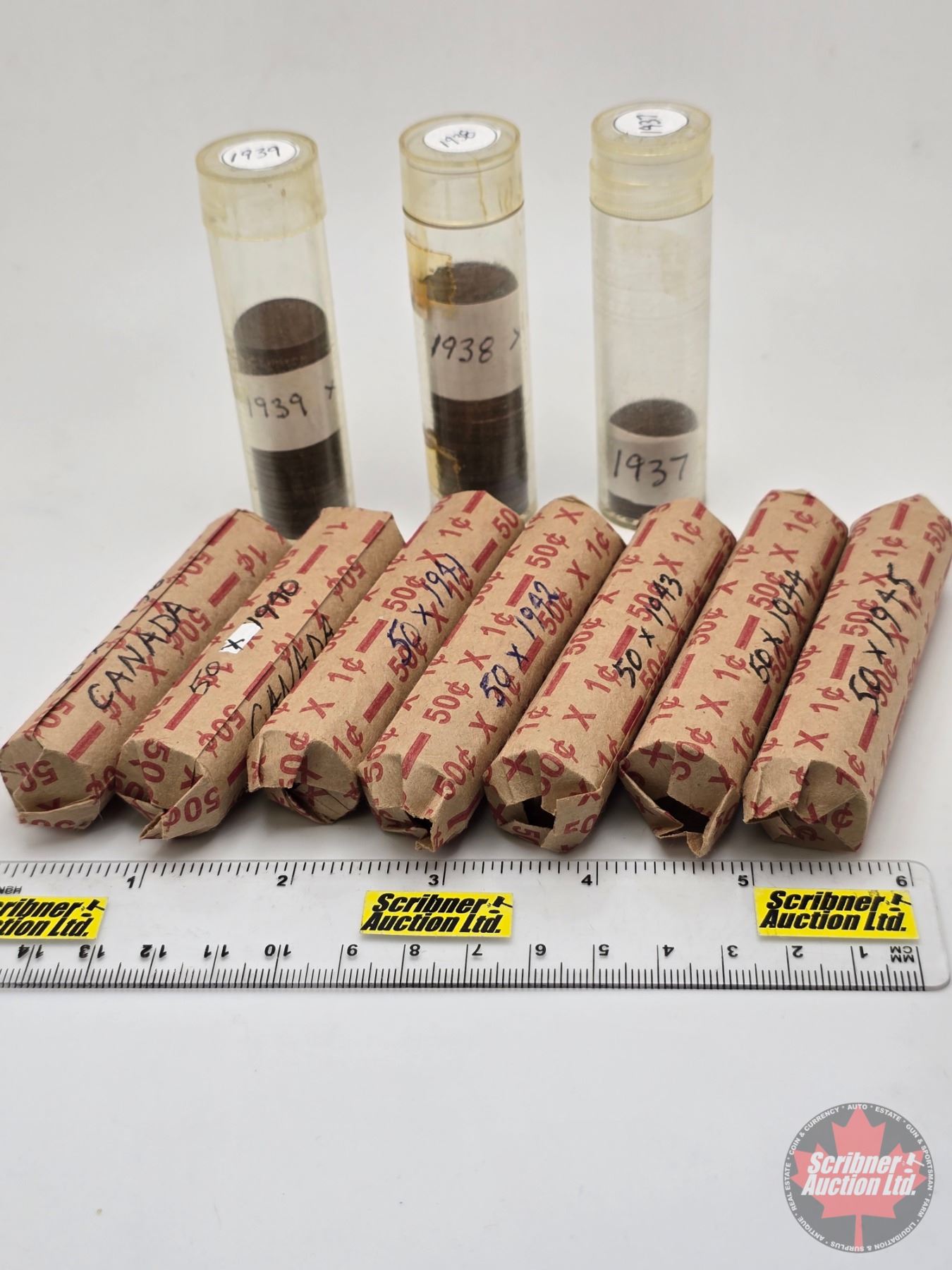 Canada One Cent ROLLS (7 + 3 Tubes) : 1930's & 1940's (SEE PICS!) (Listing & Descriptions are a GUIDE ONLY and are subject to changes, errors, additions or deletions. Please use the provided pictures to satisfy yourself to the Condition and/or Grades. Please Read & Understand All Terms & Conditions for this Auction Sale.)