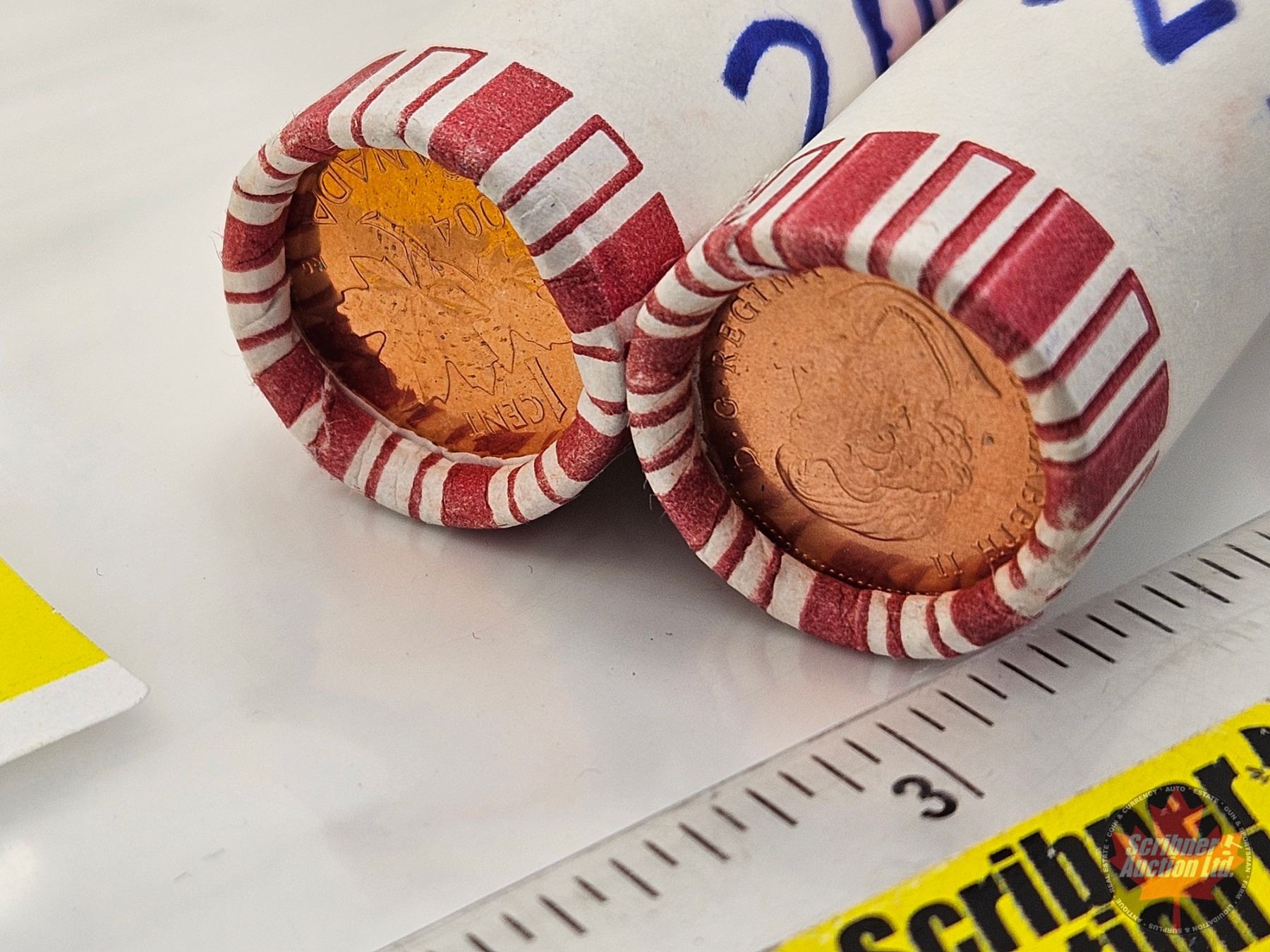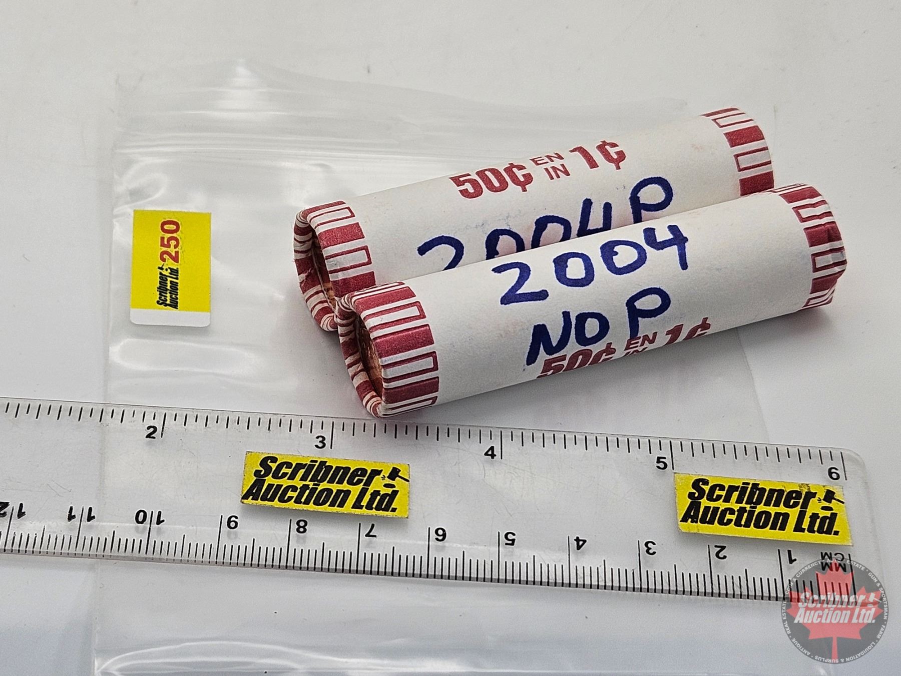 Canada One Cent Rolls (2) : 2004P (Magnetic) & 2004 No P (Non-Magnetic) (Original Rolls)
