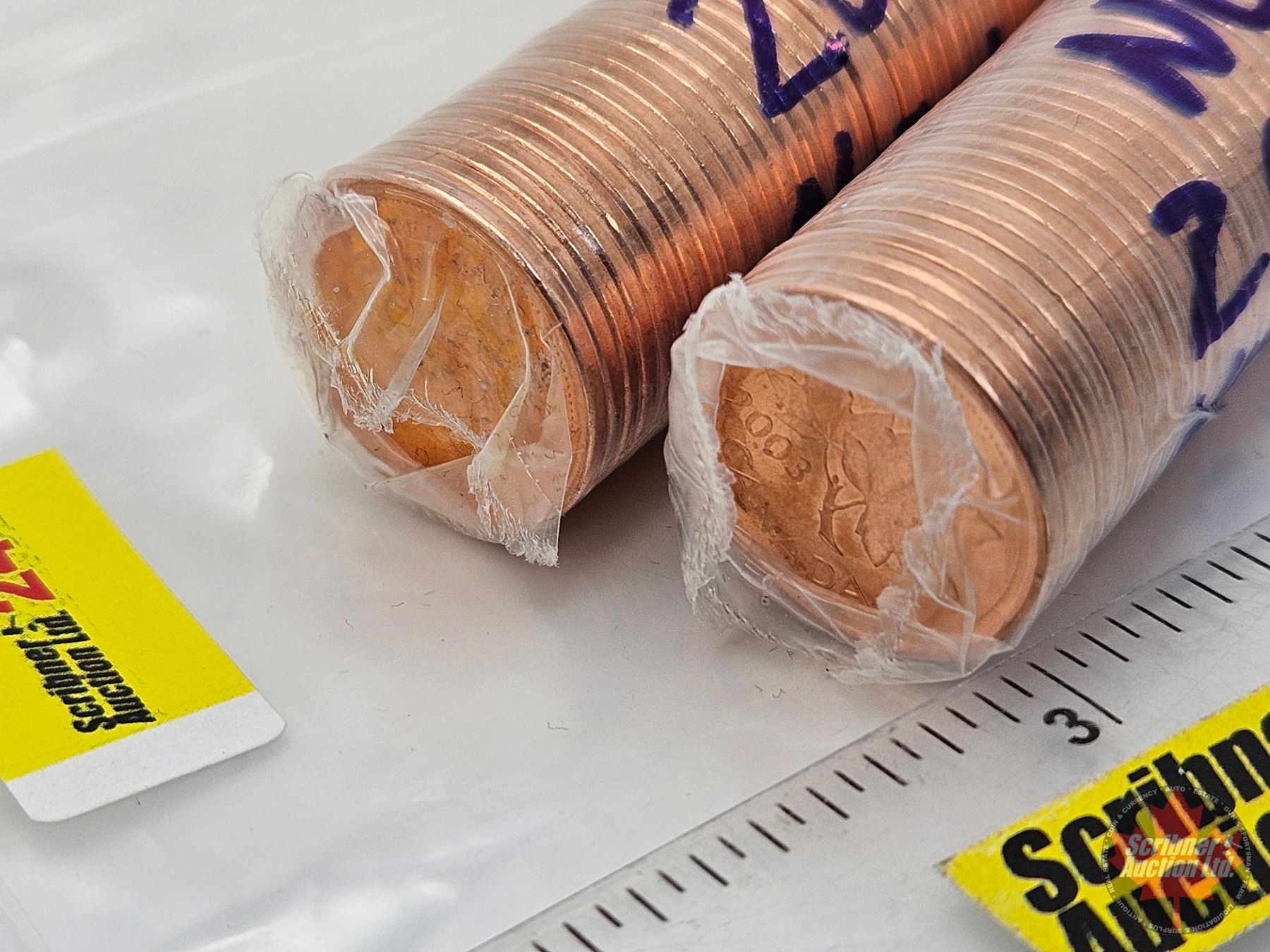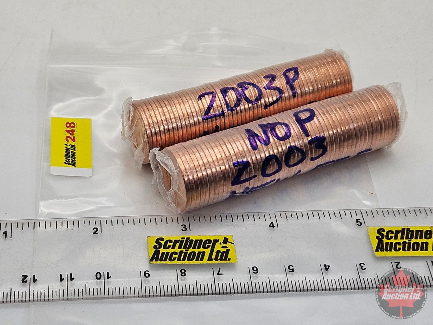 Canada One Cent Rolls (2) New Effigy : 2003P (Magnetic) & 2003 No P (Non-Magnetic) (Original Rolls)