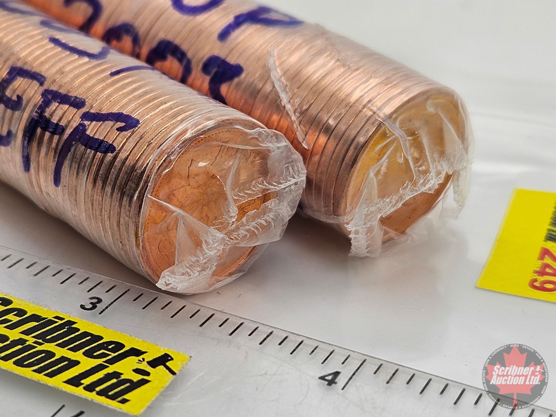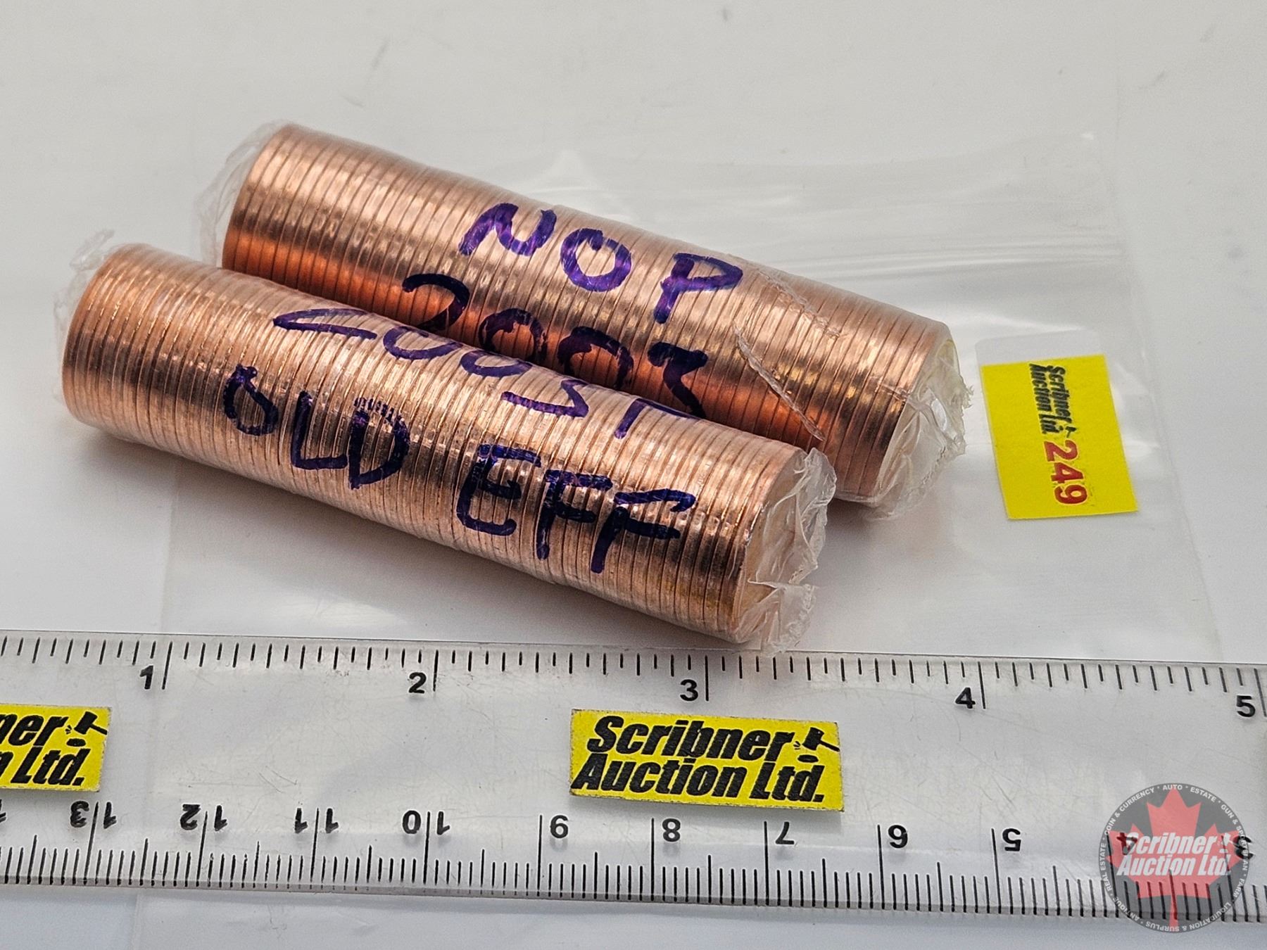 Canada One Cent Rolls (2) Old Effigy : 2003P (Magnetic) & 2003 No P (Non-Magnetic) (Original Rolls)