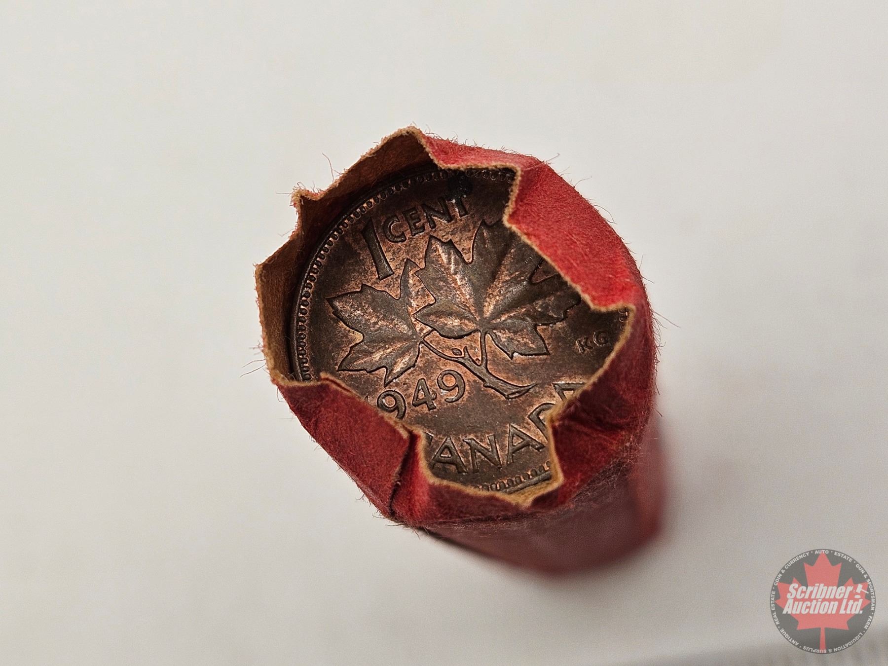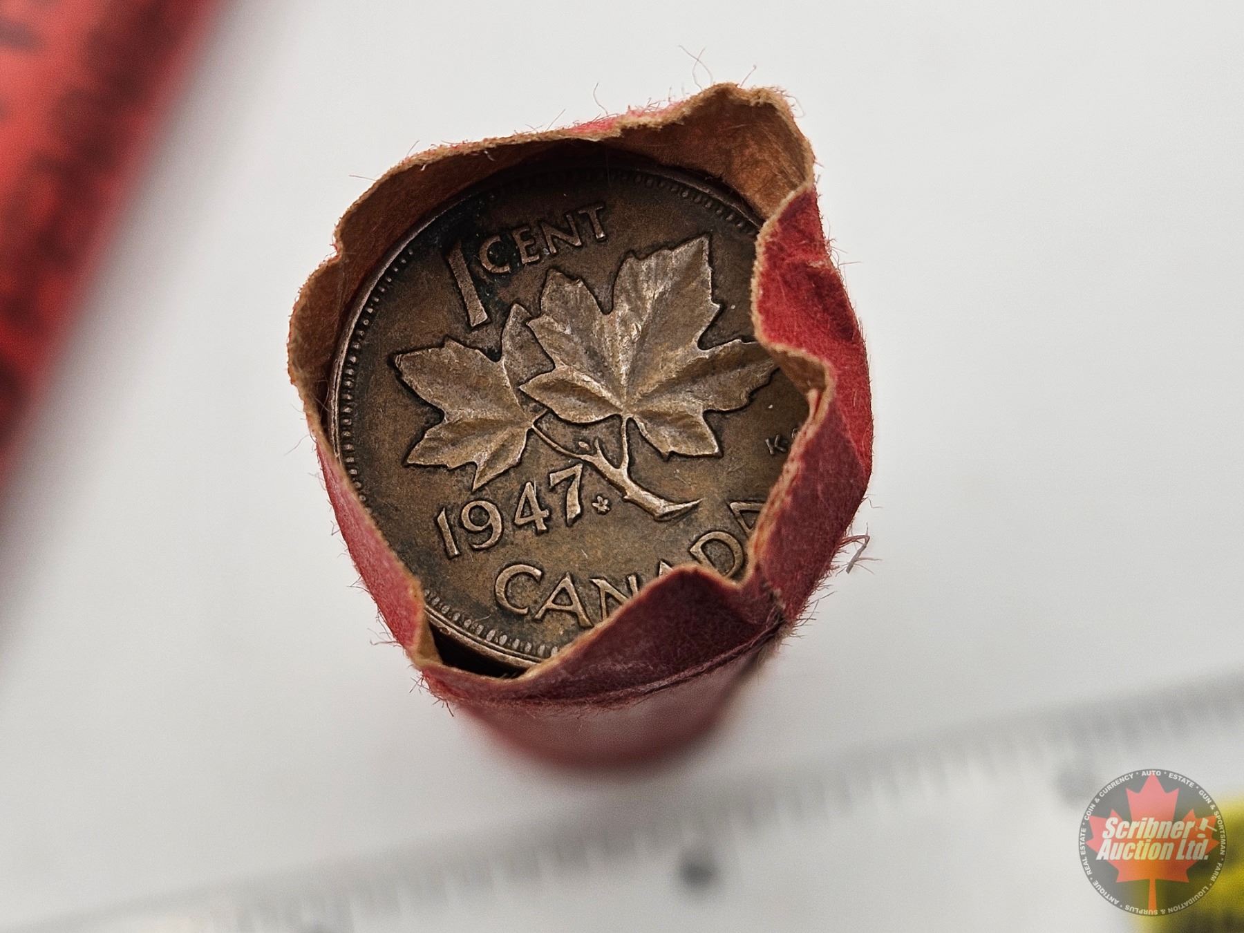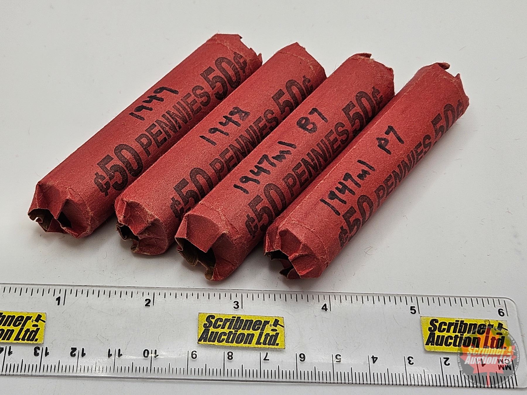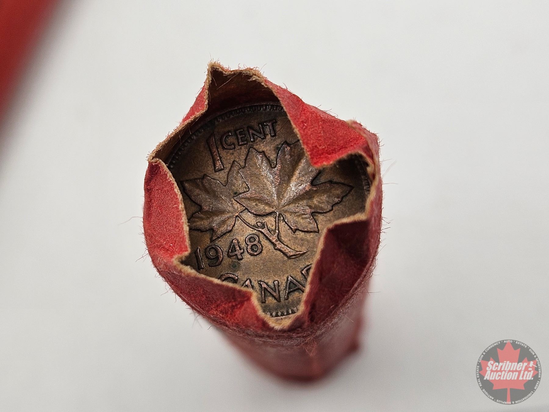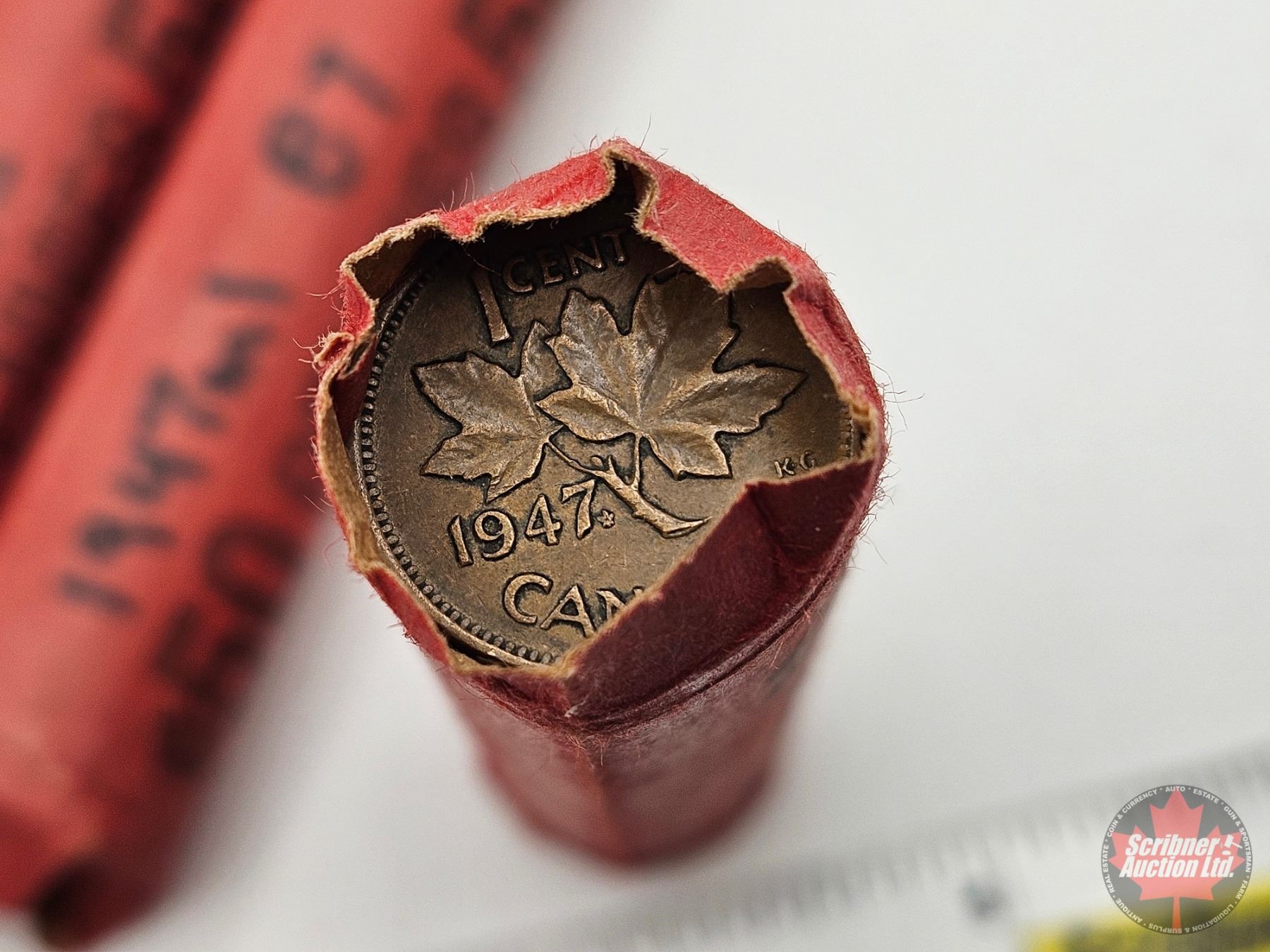 Canada One Cent Rolls (4) : 1947ML Blunt 7; 1947ML Pointed 7; 1948; 1949 (200 Coins)