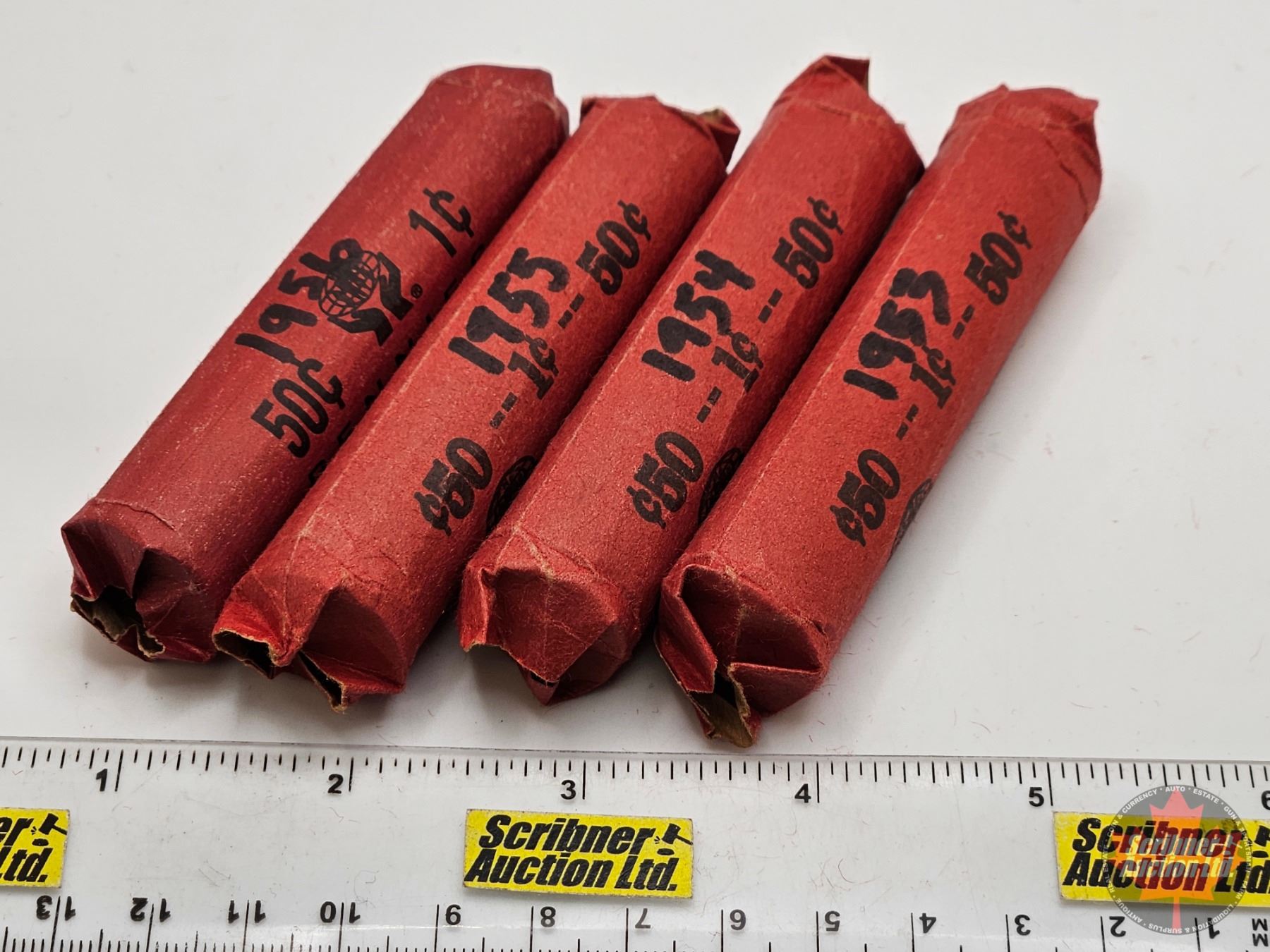 Canada One Cent Rolls (4) : 1953; 1954; 1955; 1956 (200 Coins)