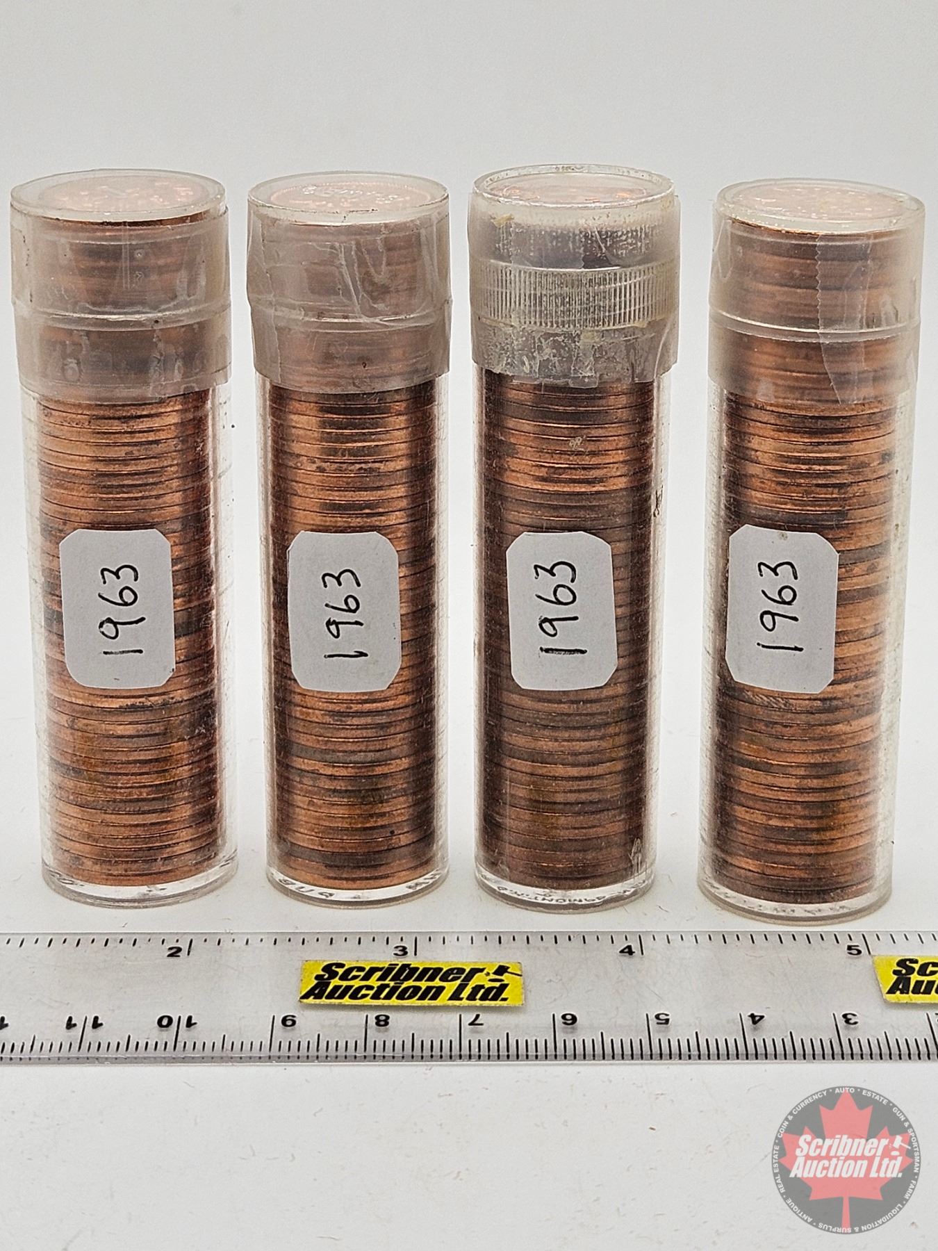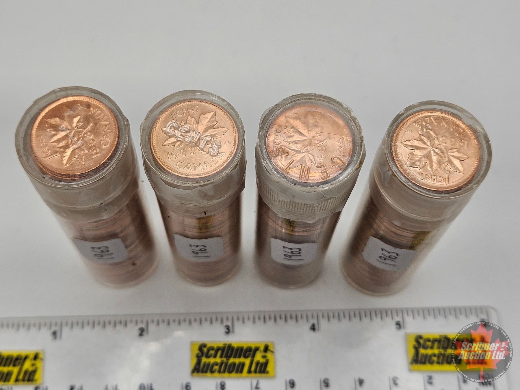 Canada One Cent Rolls (4) : 1963 (in Tubes) (200 Coins)
