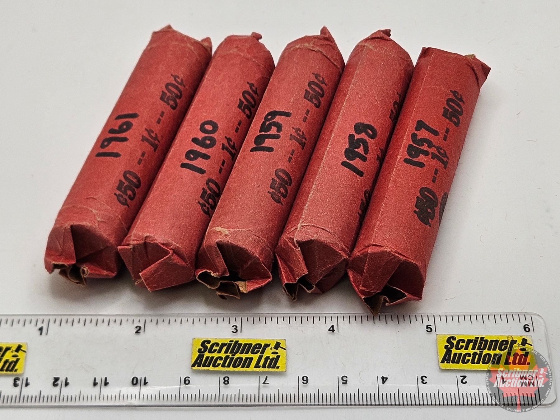 Canada One Cent Rolls (5) : 1957; 1958; 1959; 1960; 1961 (250 Coins)