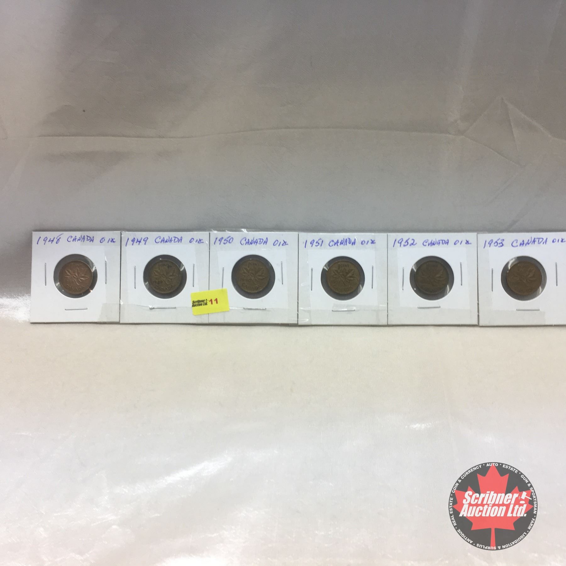 Canada One Cent - Strip of 6: 1948; 1949; 1950; 1951; 1952; 1953