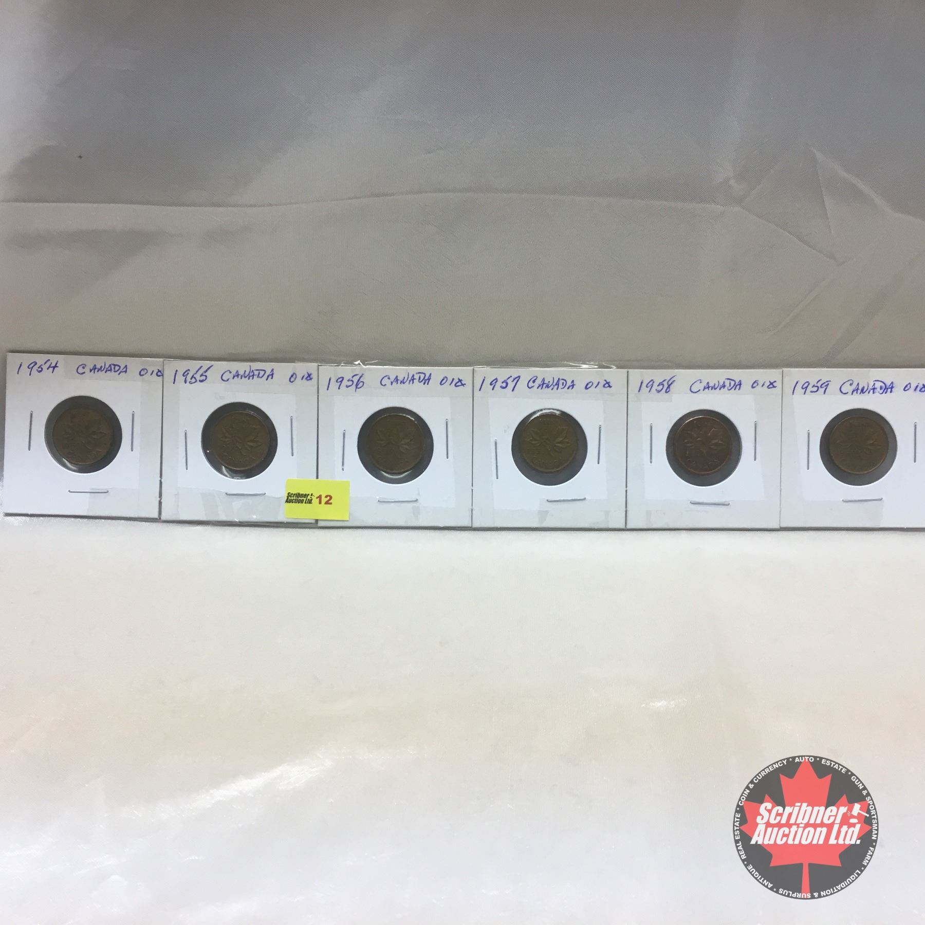 Canada One Cent - Strip of 6: 1954; 1955; 1956; 1957; 1958; 1959