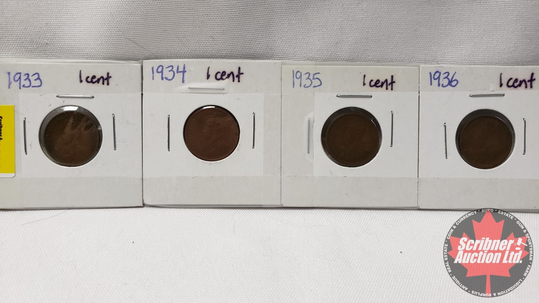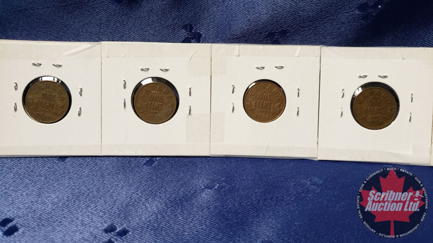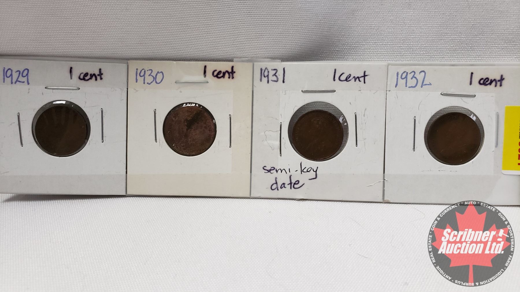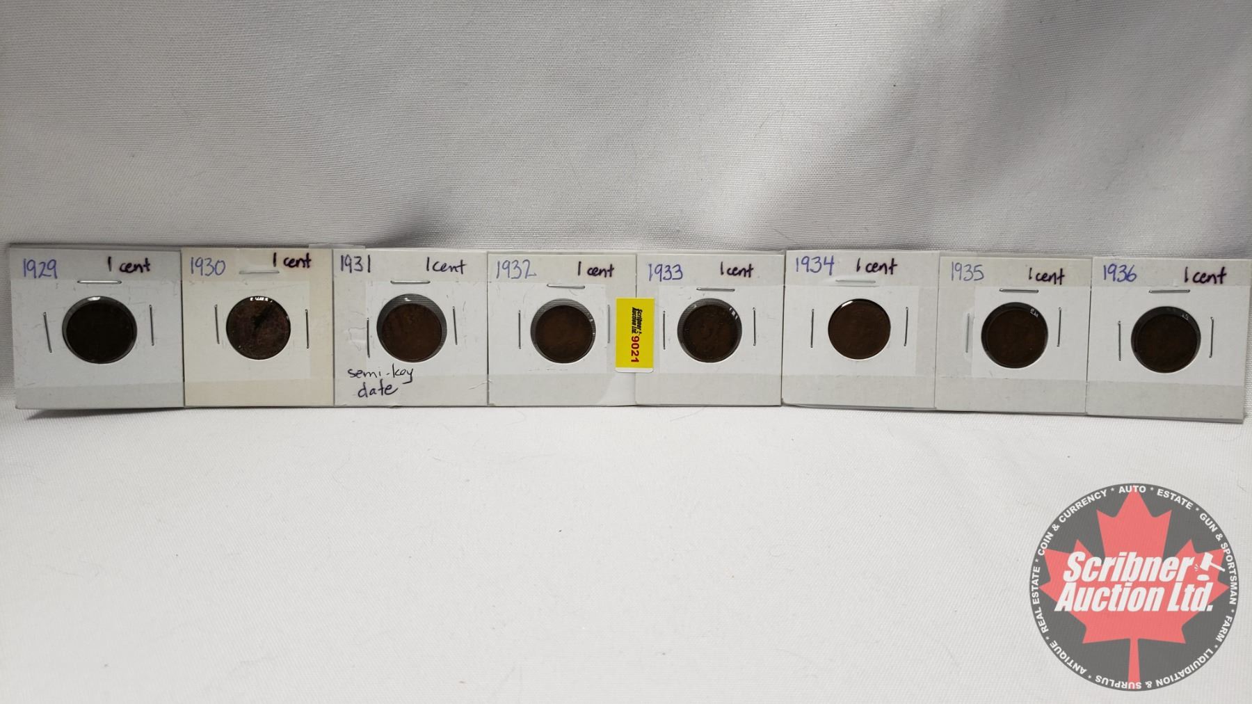 Canada One Cent - Strip of 8: 1929; 1930; 1931; 1932; 1933; 1934; 1935; 1936
