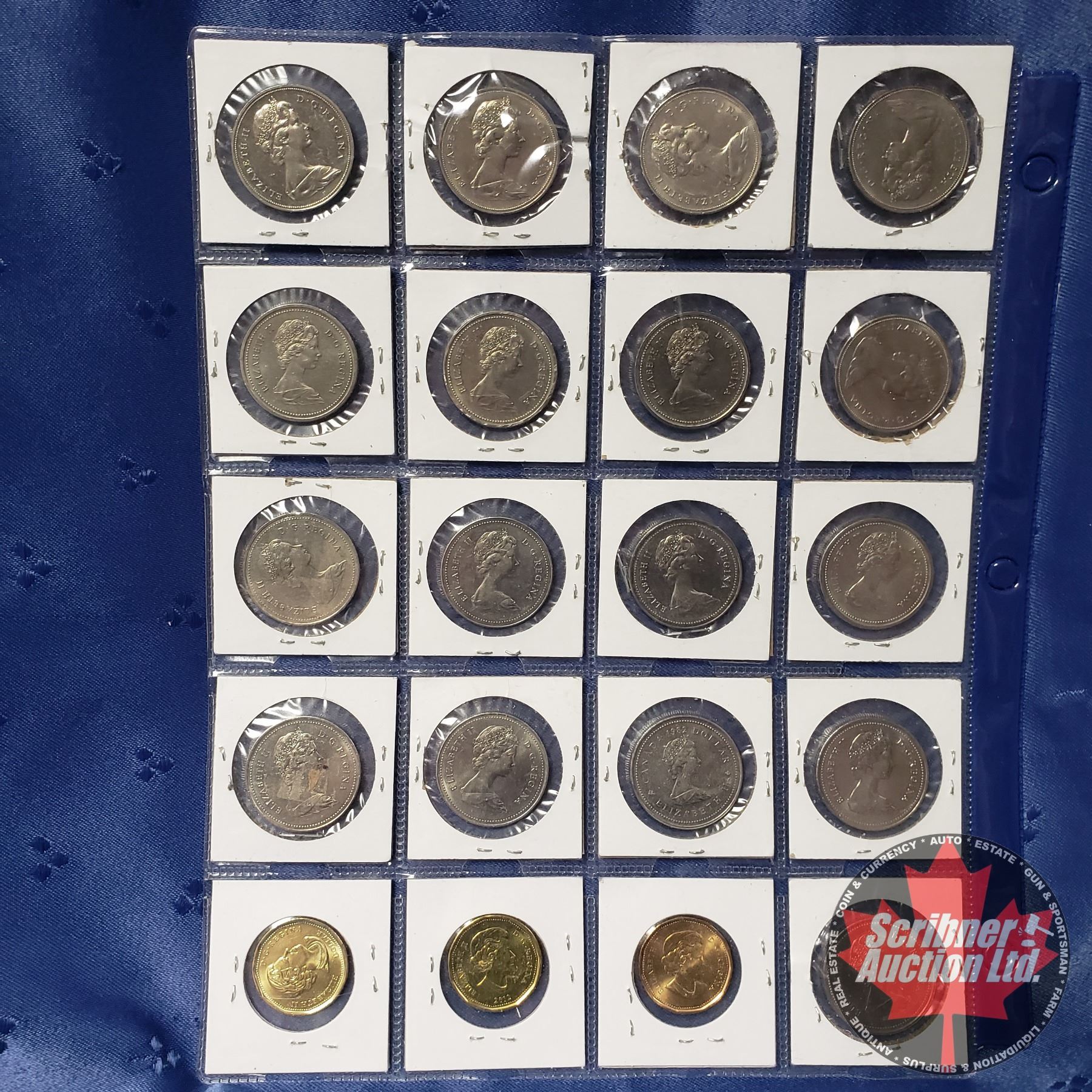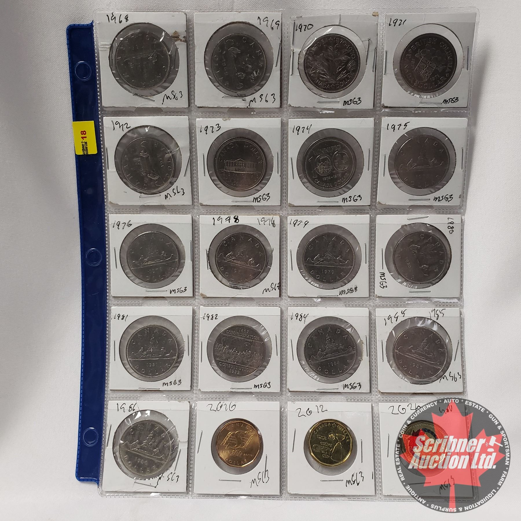 Canada One Dollar - Sheet of 20: 1968; 1969; 1970; 1971; 1972; 1973; 1974; 1975; 1976; 1978; 1979; 1980; 1981; 1982; 1984; 1985; 1986 (Loonies : 2010; 2012; 2020)