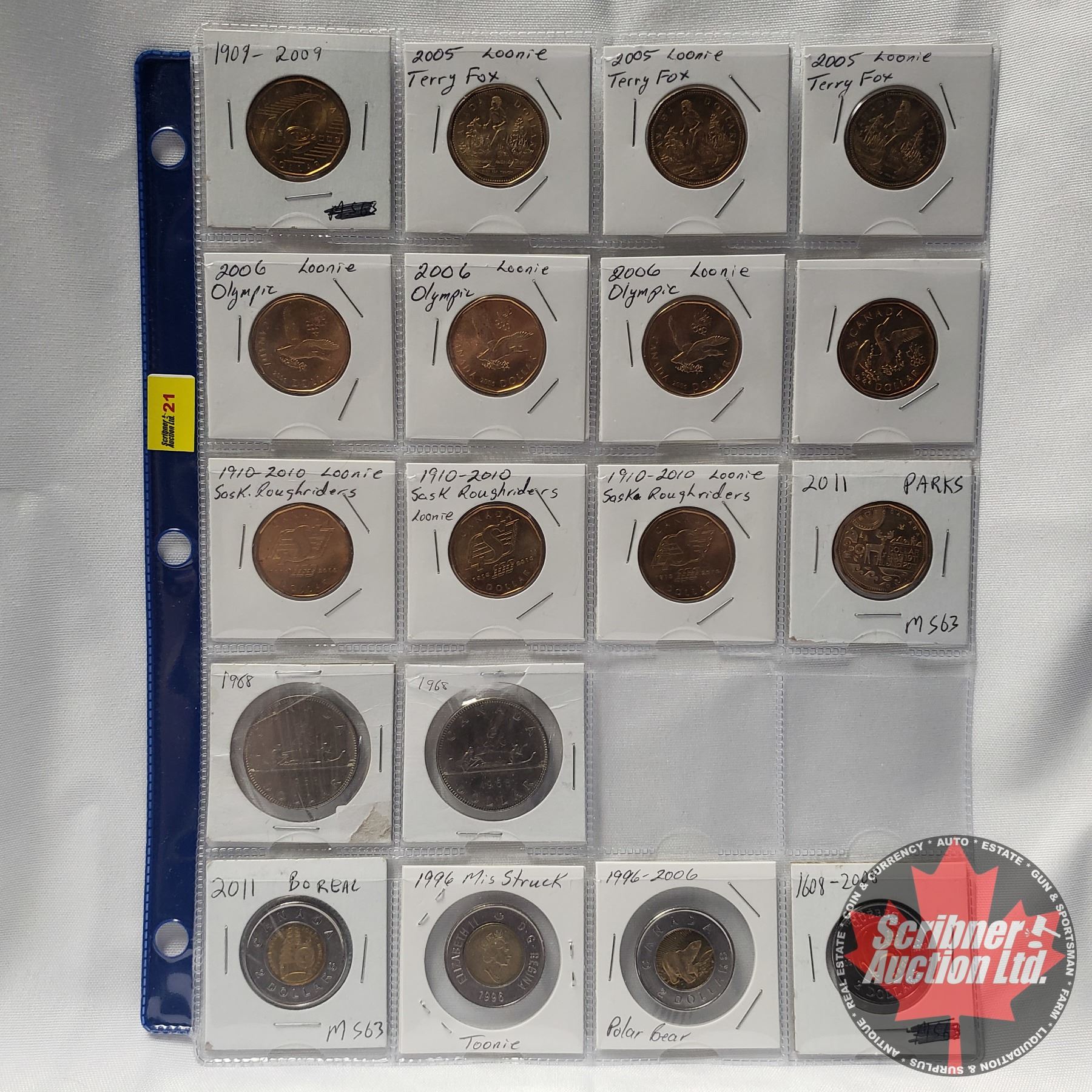 Canada One Dollar & Two Dollar (Sheet of 18 - VARIETY) (12 Loonies; 2 Dollars; 4 Toonies)