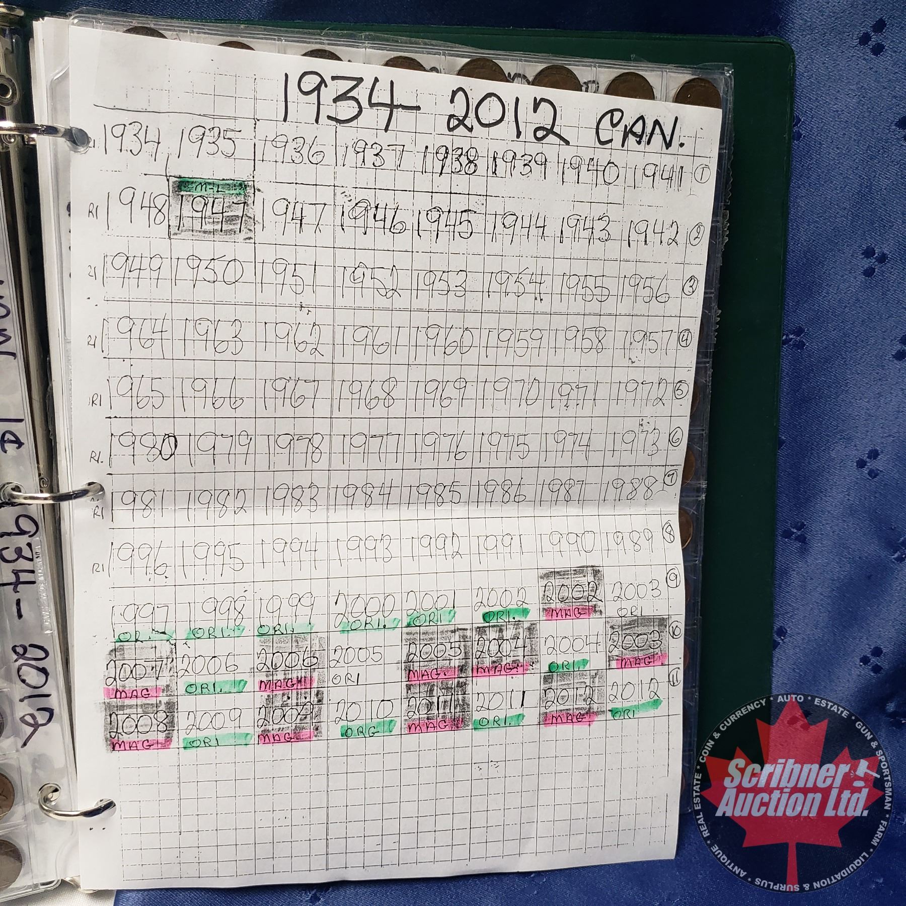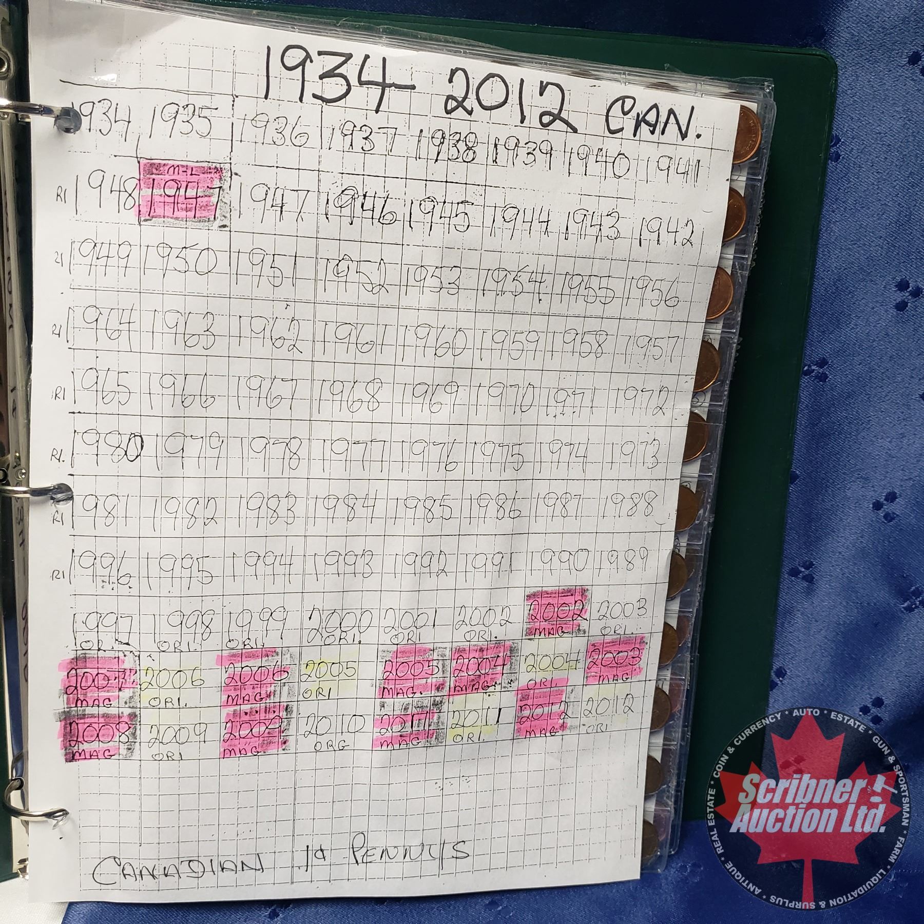 Canada Penny Collection - Binder Lot (616 Coins) (1930's - 2000's) (See Pics)
