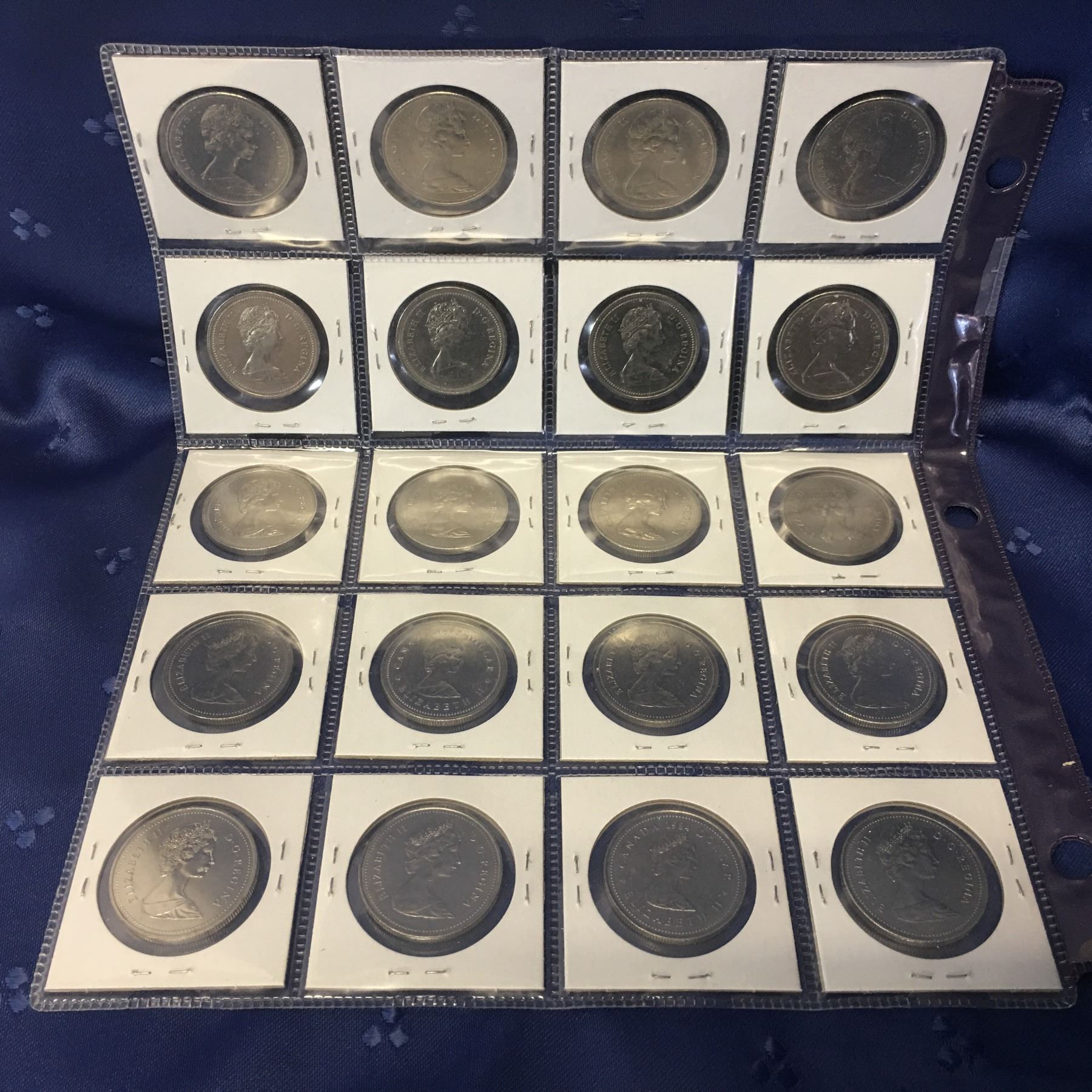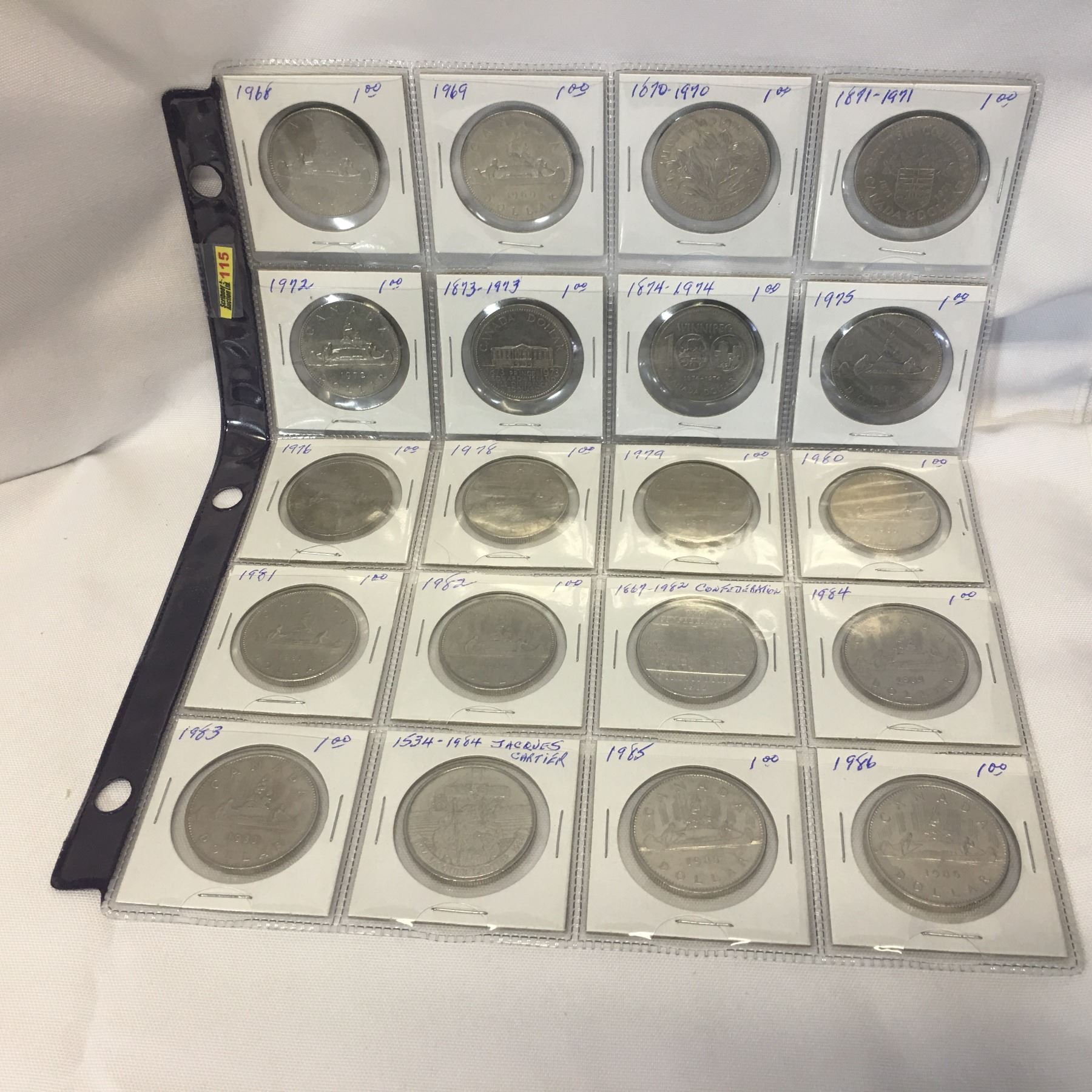 Canada Silver Dollar - Sheet of 20: 1968; 1969; 1870-1970; 1871-1971; 1972; 1873-1973; 1874-1974; 1975; 1976; 1978; 1979; 1980; 1981; 1982; 1867-1982; 1984; 1983; 1534-1984; 1985; 1986
