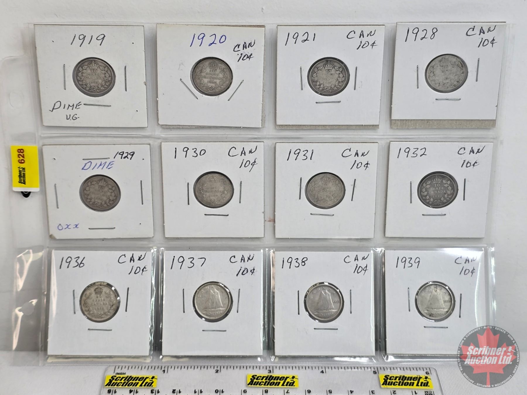 Canada Ten Cent (12) : 1919; 1920; 1921; 1928; 1929; 1930; 1931; 1932; 1936; 1937; 1938; 1939 (SEE PICS!) (Listing & Descriptions are a GUIDE ONLY and are subject to changes, errors, additions or deletions. Please use the provided pictures to satisfy yourself to the Condition and/or Grades. Please Read & Understand All Terms & Conditions for this Auction Sale.)