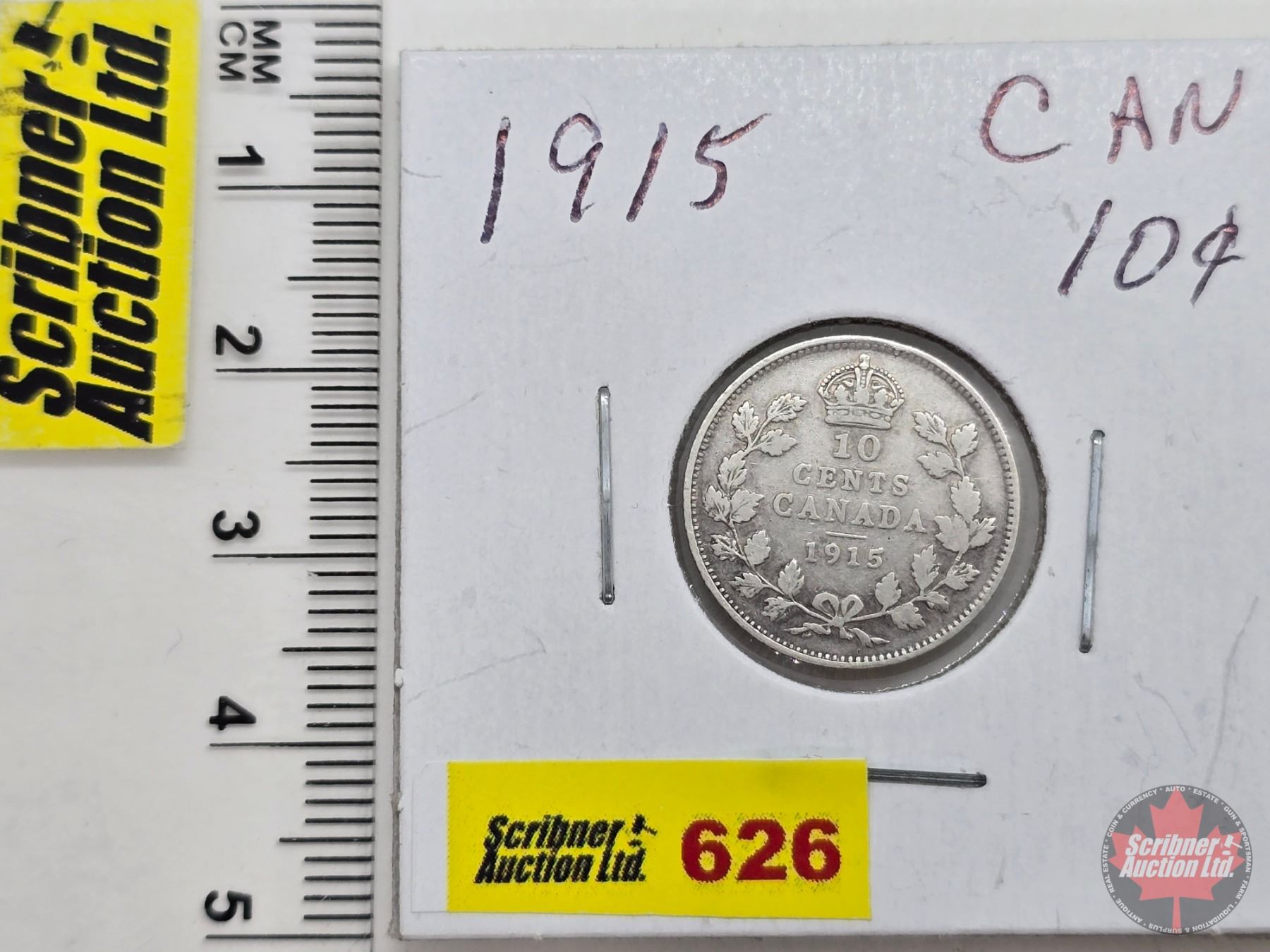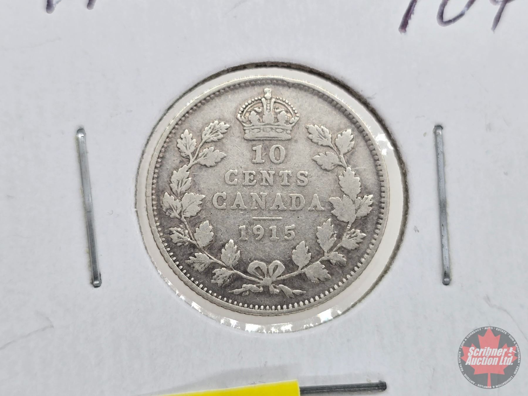 Canada Ten Cent 1915 (SEE PICS!) (Listing & Descriptions are a GUIDE ONLY and are subject to changes, errors, additions or deletions. Please use the provided pictures to satisfy yourself to the Condition and/or Grades. Please Read & Understand All Terms & Conditions for this Auction Sale.)