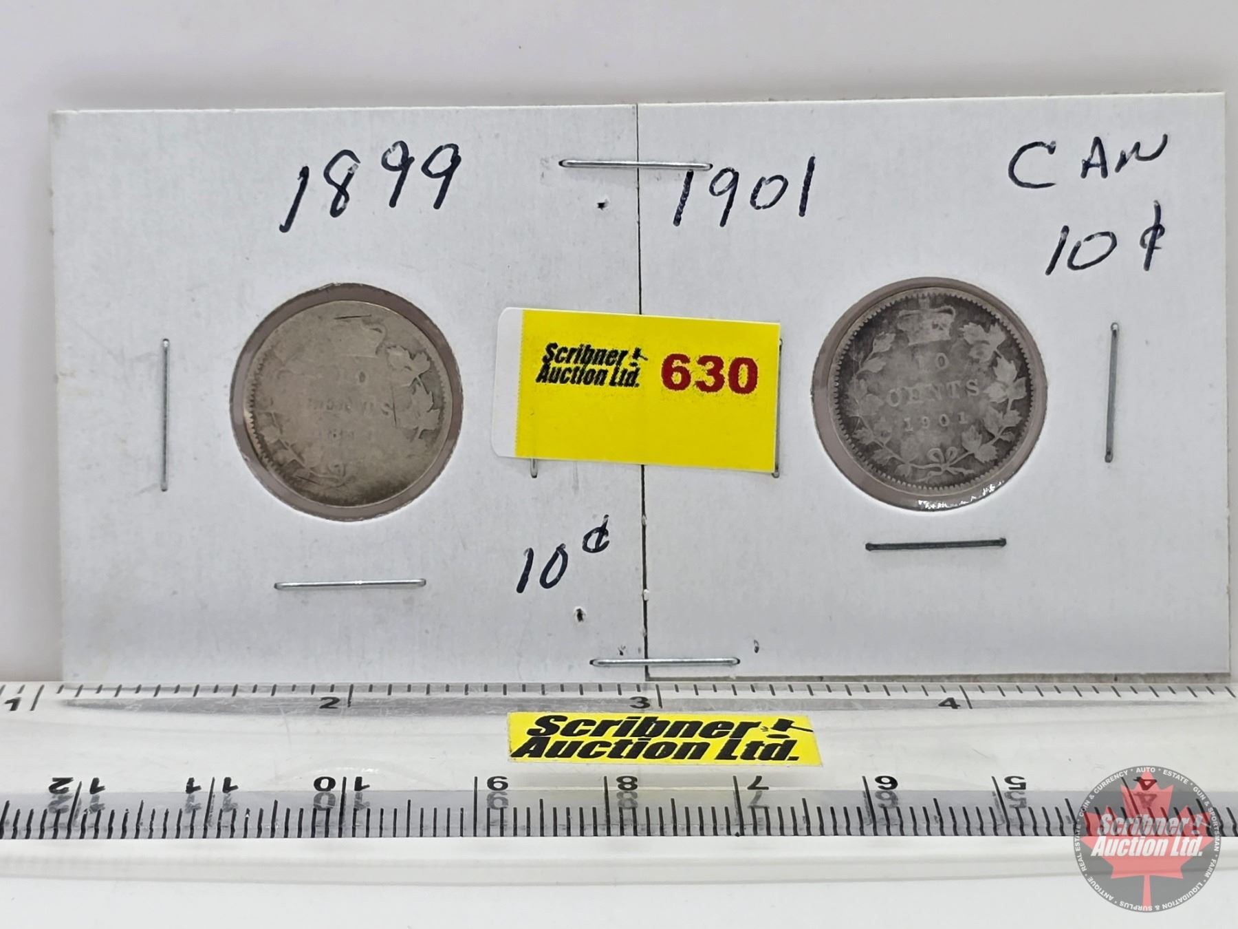 Canada Ten Cent (2) : 1899; 1901 (SEE PICS!) (Listing & Descriptions are a GUIDE ONLY and are subject to changes, errors, additions or deletions. Please use the provided pictures to satisfy yourself to the Condition and/or Grades. Please Read & Understand All Terms & Conditions for this Auction Sale.)