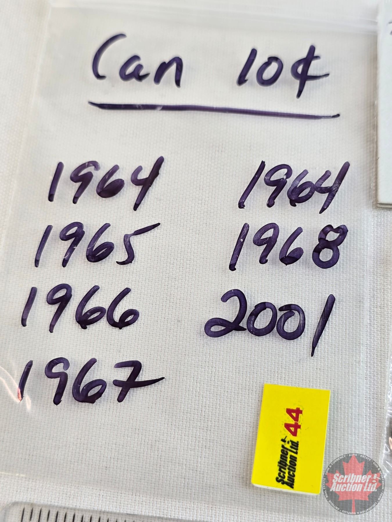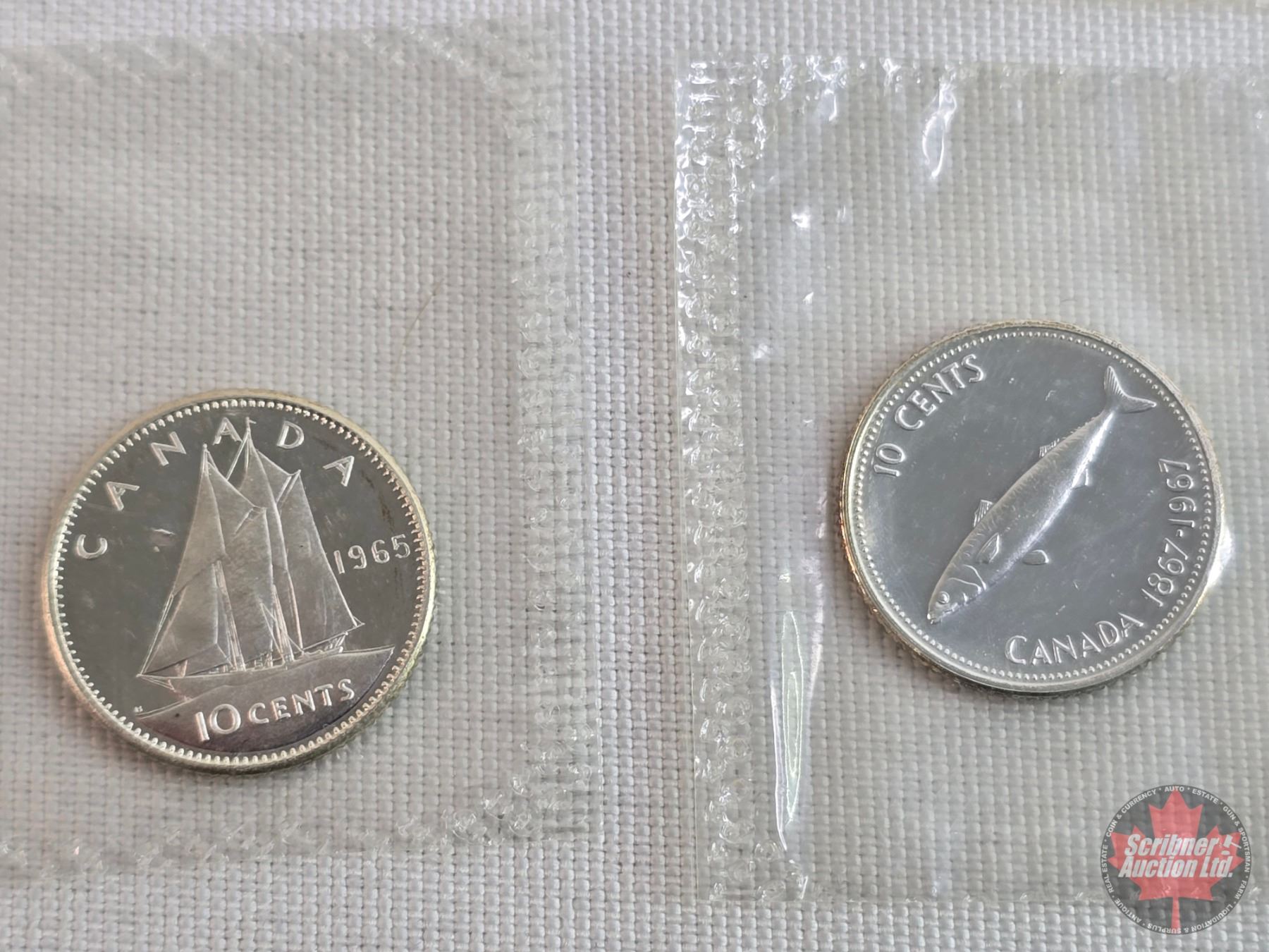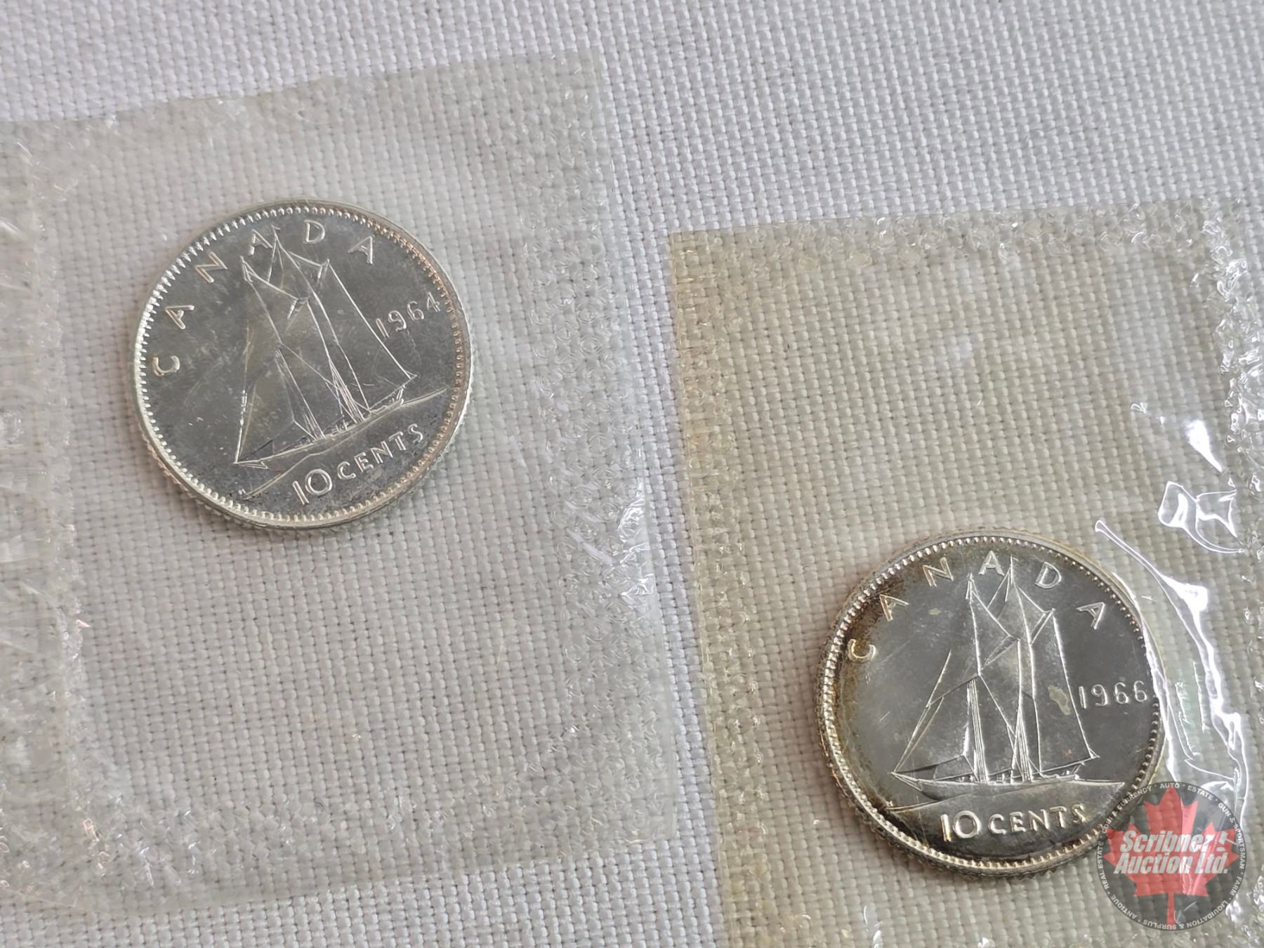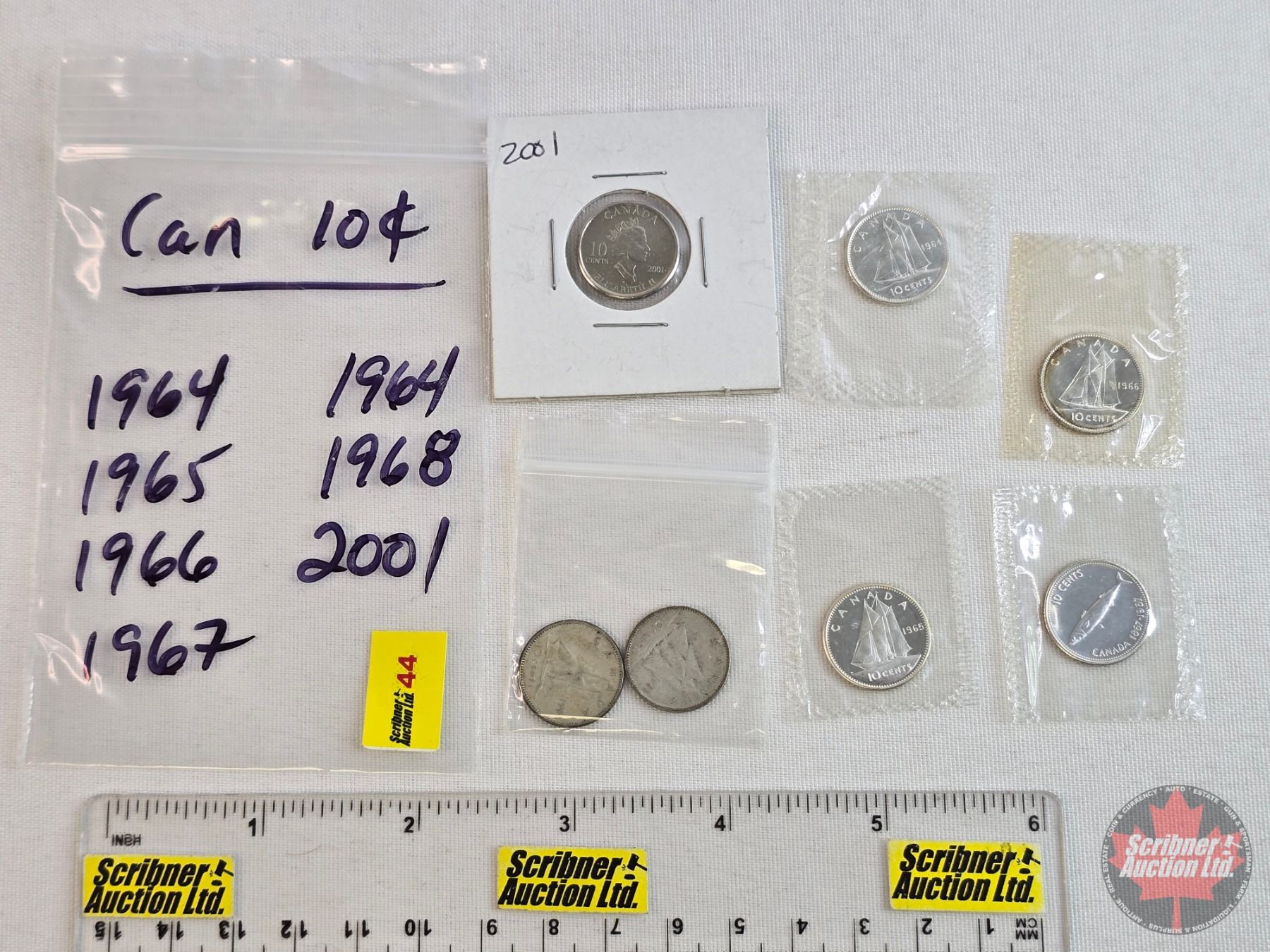 Canada Ten Cent (7 Variety Types/Styles): 1964; 1964; 1965; 1966; 1867-1967; 1968; 2001