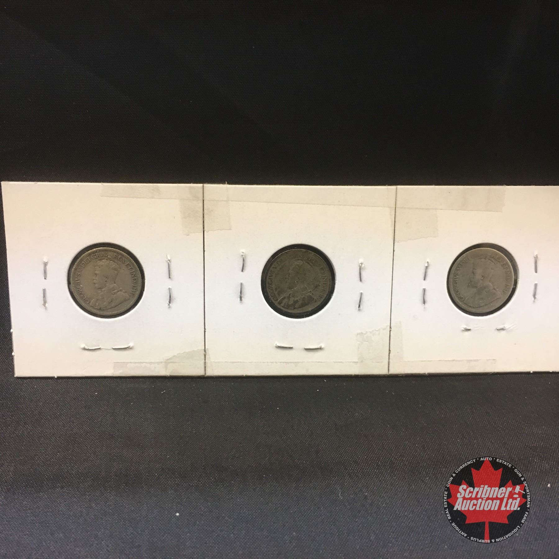 Canada Ten Cent - Strip of 3: 1929; 1932; 1936