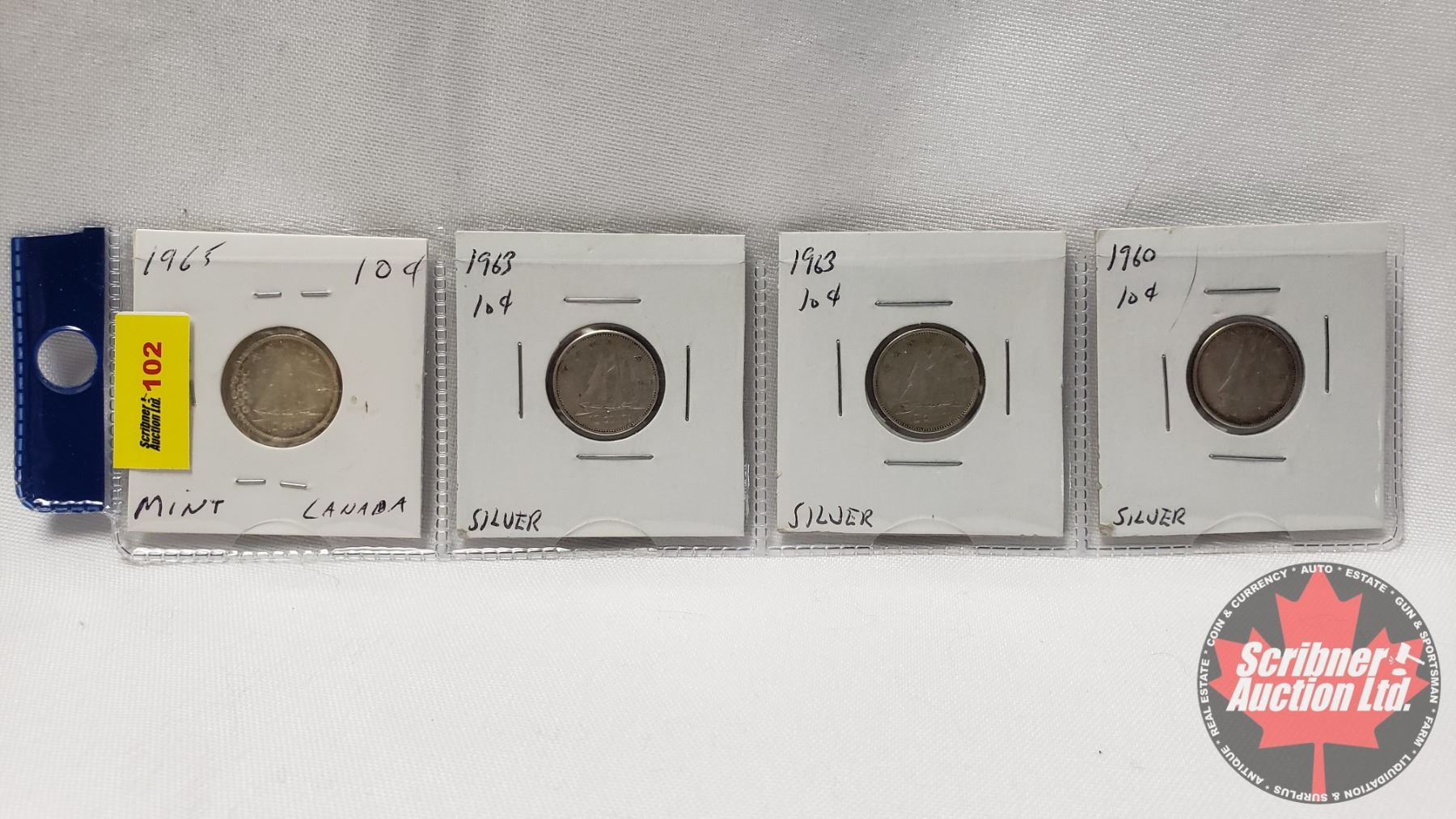 Canada Ten Cent - Strip of 4: 1965 Mint; 1963; 1963; 1960