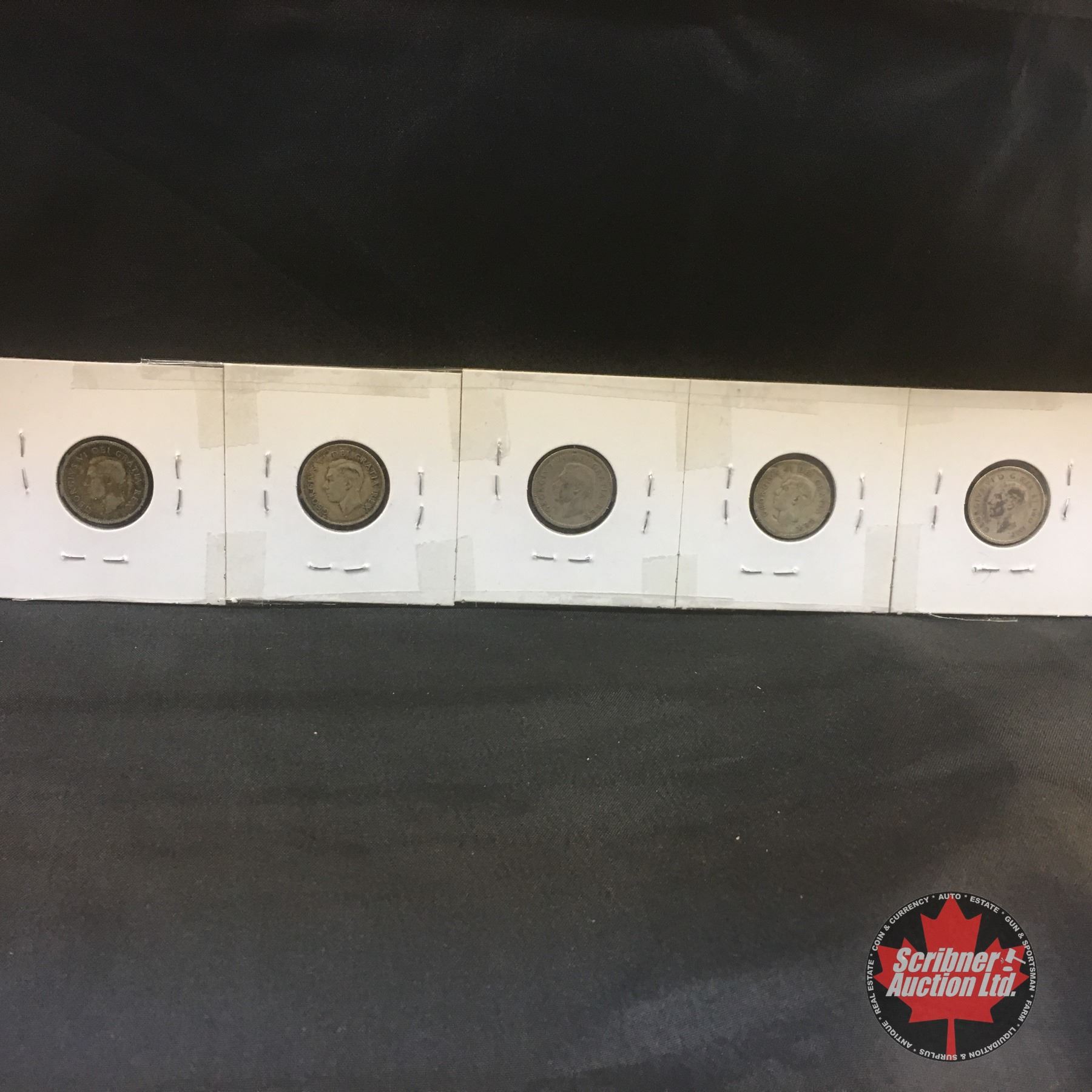 Canada Ten Cent - Strip of 5: 1947ML; 1949; 1950; 1952; 1951