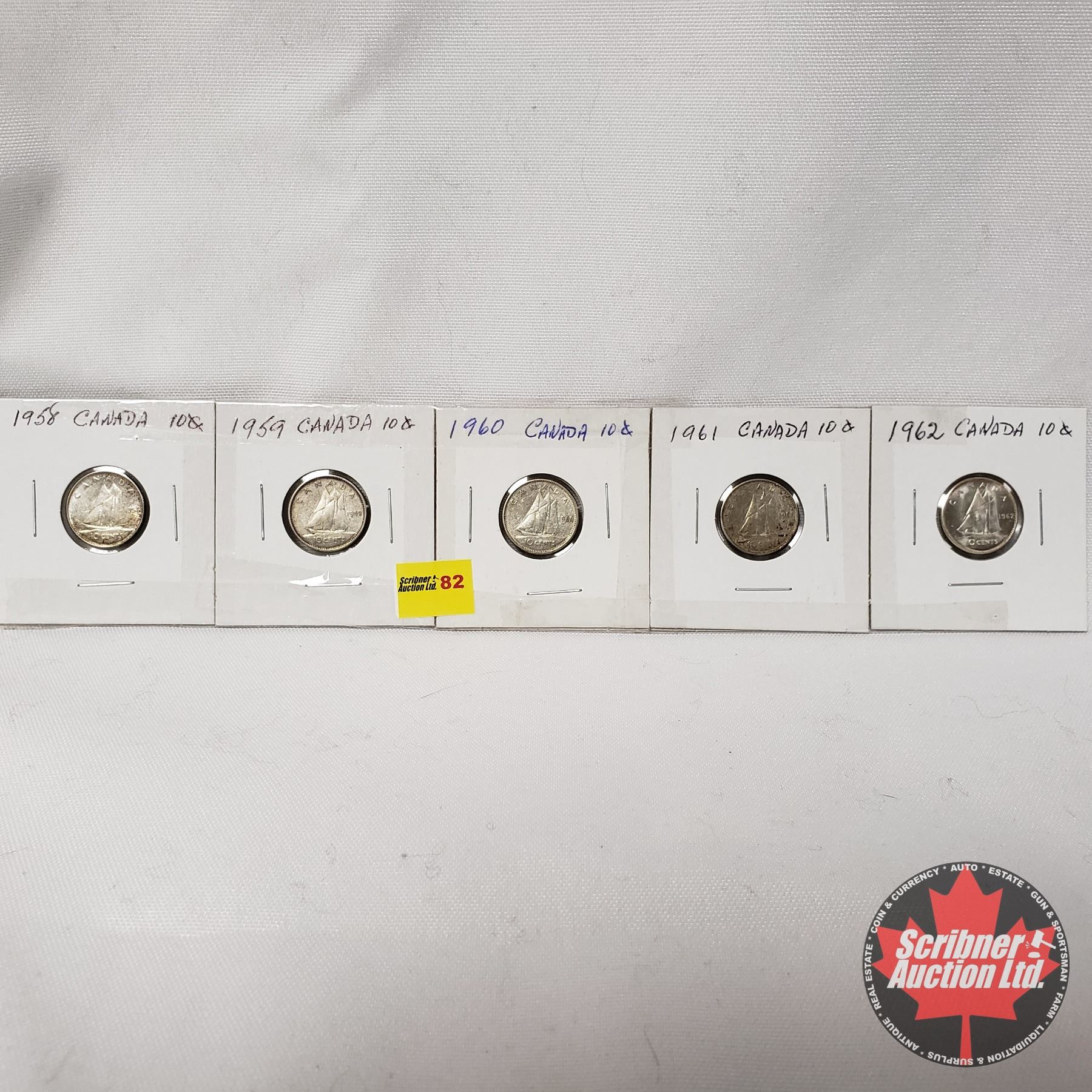 Canada Ten Cent - Strip of 5: 1958; 1959; 1960; 1961; 1962