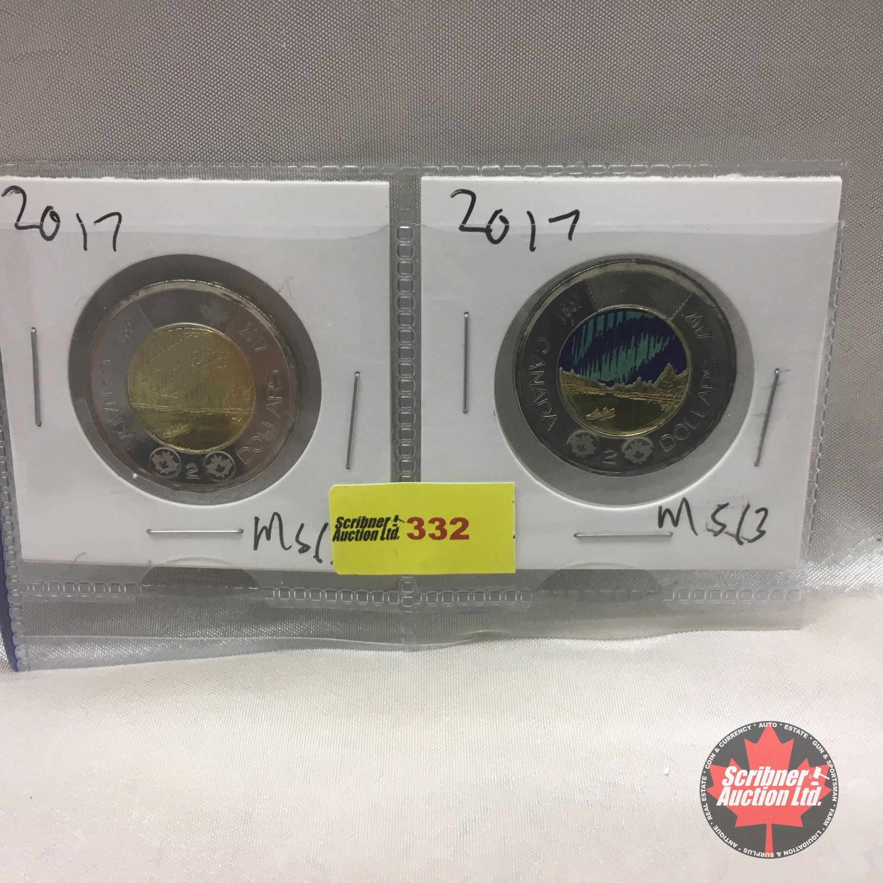 Canada Toonie 2017 - Strip of 2: Aurora Borealis (Non Color/Color)
