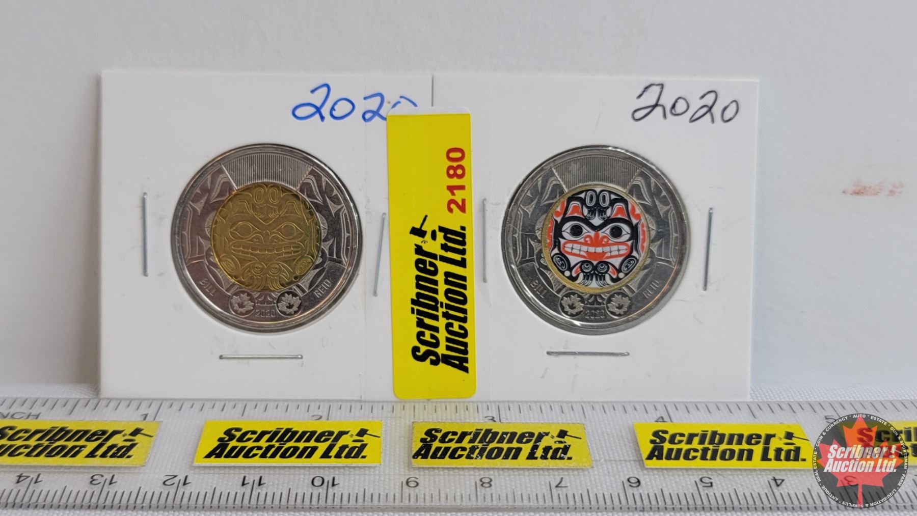 Canada Toonies (2) : 2020 Bill Reid Colorized & Non Colorized (SEE PICS!)
