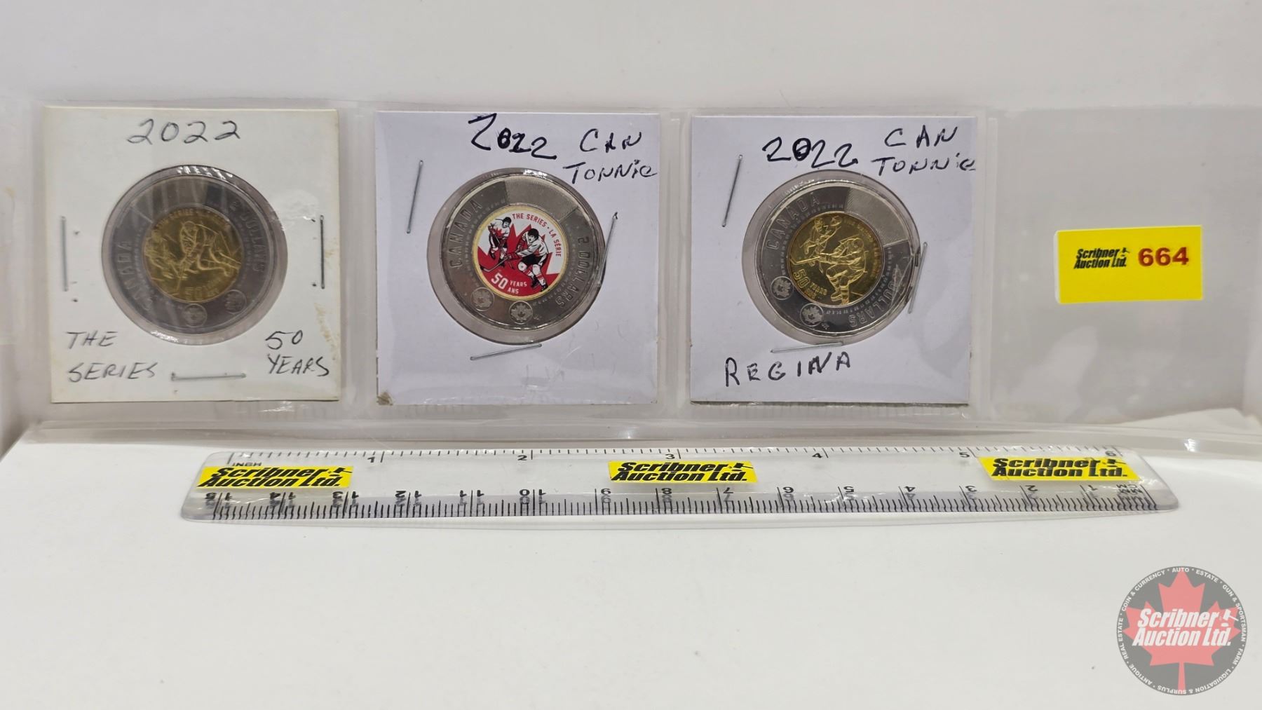 Canada Toonies (3): 2022 Summit Series 50 Yrs ~ Non-Colorized (2); 2022 Summit Series 50 Yrs ~ Colorized (SEE PICS!) (Listing & Descriptions are a GUIDE ONLY and are subject to changes, errors, additions or deletions. Please use the provided pictures to satisfy yourself to the Condition and/or Grades. Please Read & Understand All Terms & Conditions for this Auction Sale.)