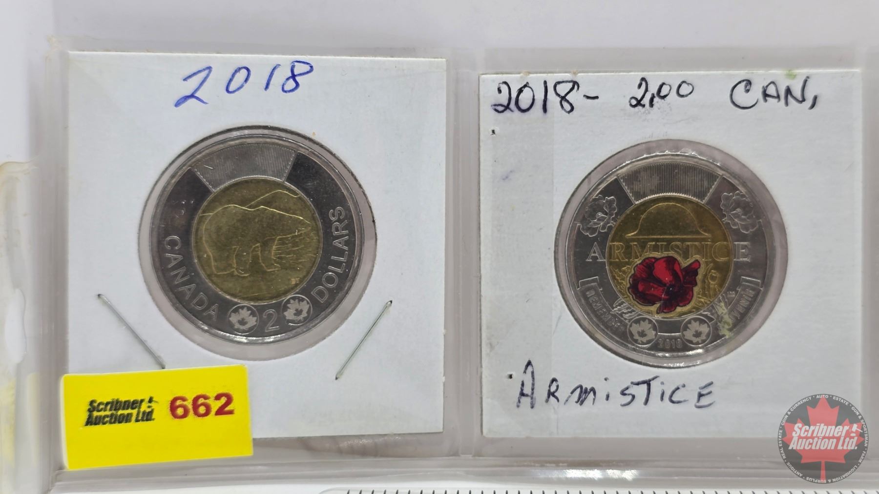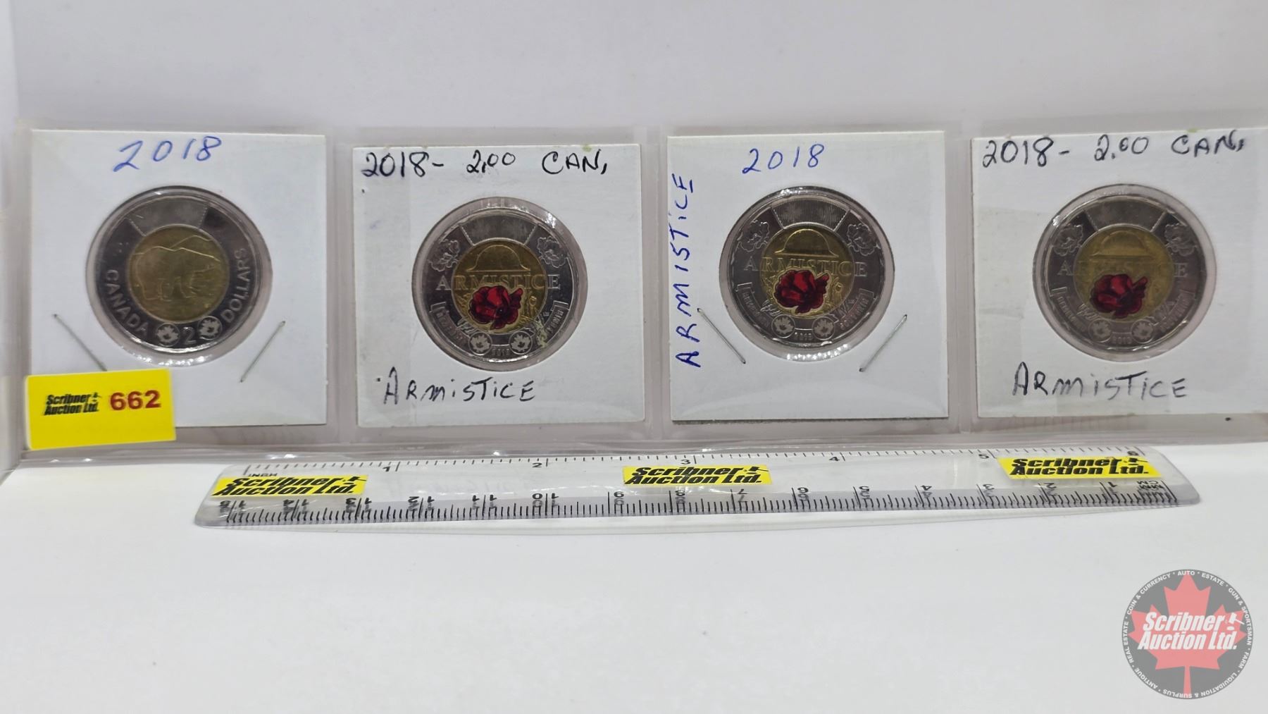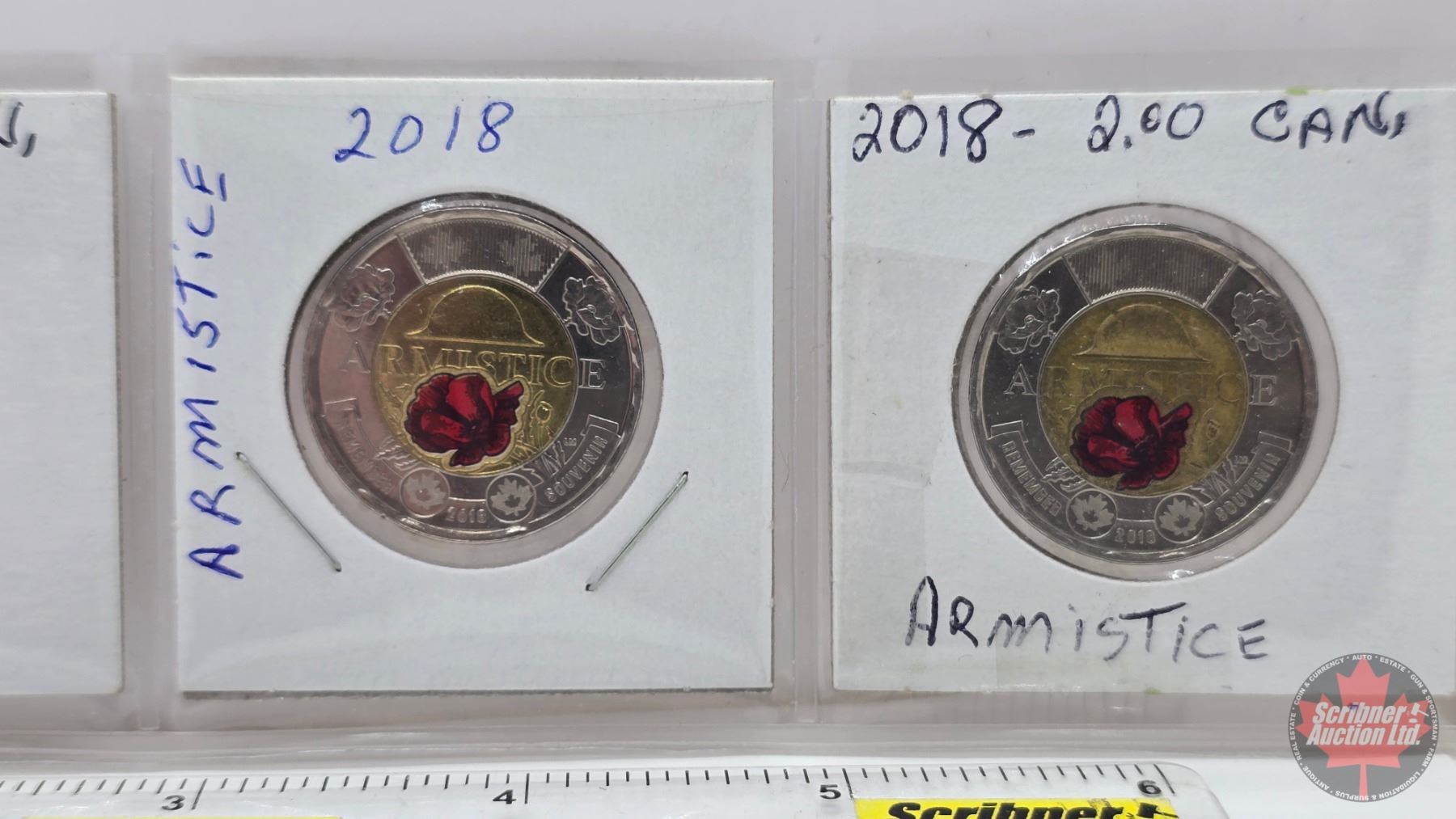 Canada Toonies (4): 2018 Armistice Colorized (3) ; 2018 (SEE PICS!) (Listing & Descriptions are a GUIDE ONLY and are subject to changes, errors, additions or deletions. Please use the provided pictures to satisfy yourself to the Condition and/or Grades. Please Read & Understand All Terms & Conditions for this Auction Sale.)