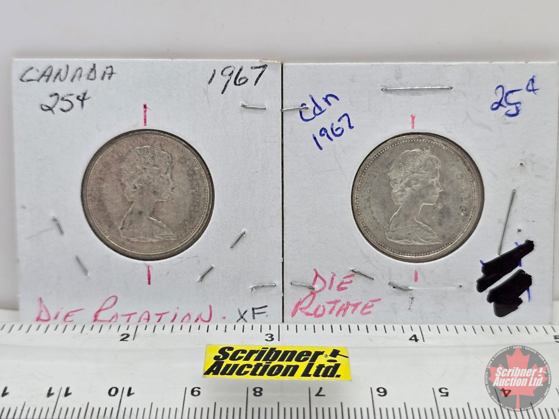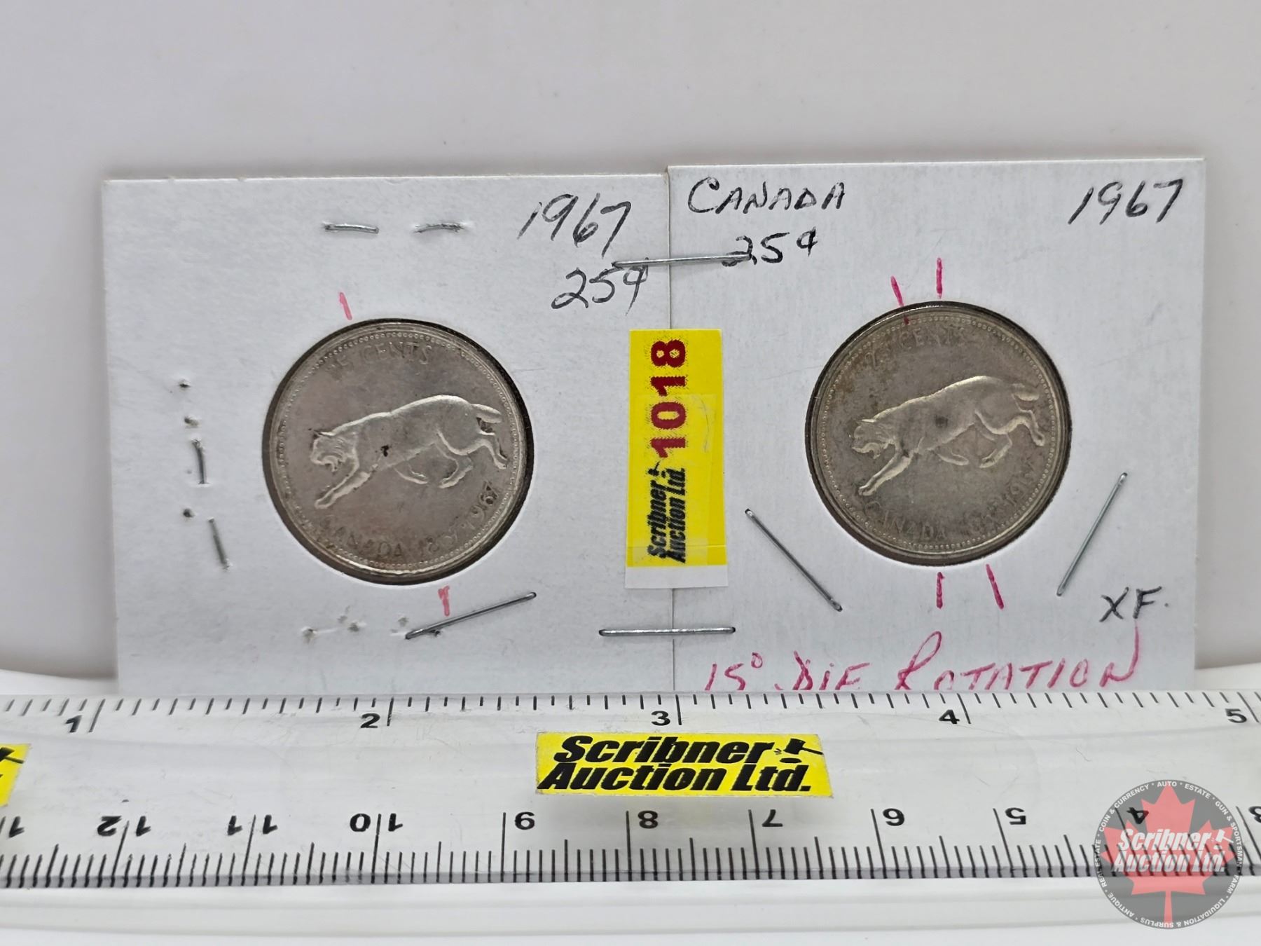 Canada Twenty Five Cent (2): 1967 (Slight Die Rotations) (SEE PICS!)