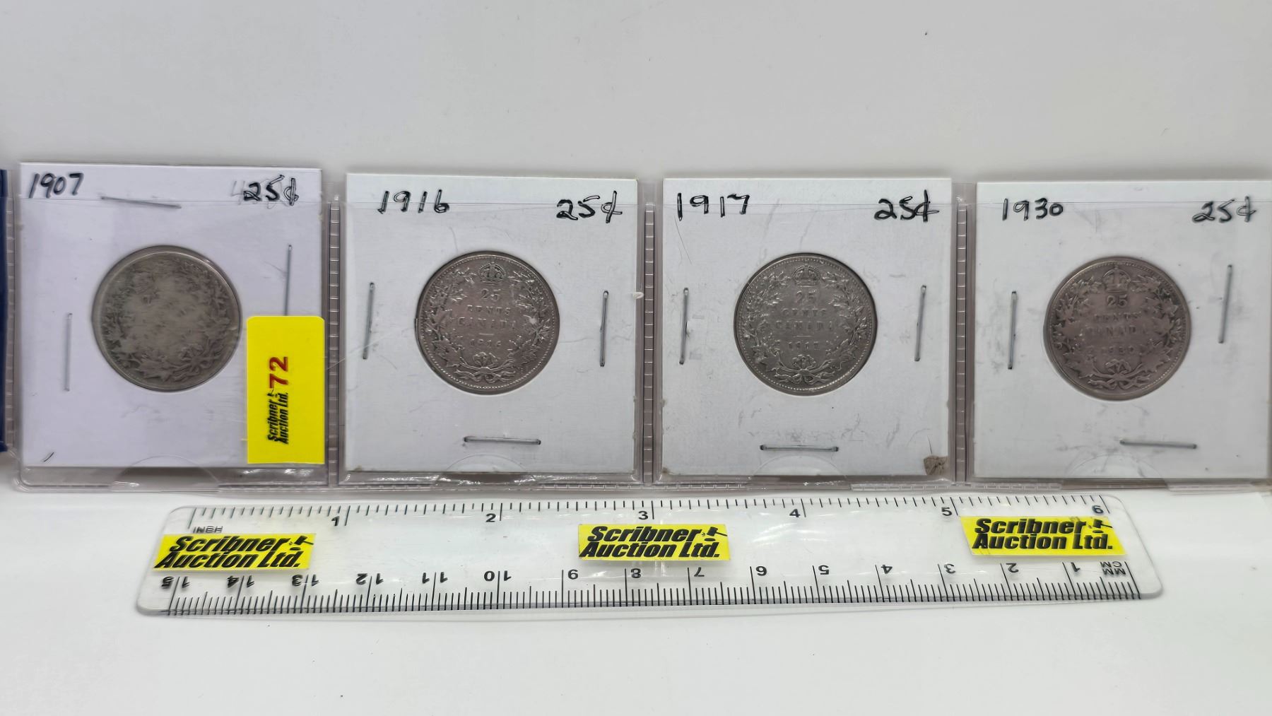 Canada Twenty Five Cent (4): 1907; 1916; 1917; 1930 (SEE PICS!) (Listing & Descriptions are a GUIDE ONLY and are subject to changes, errors, additions or deletions. Please use the provided pictures to satisfy yourself to the Condition and/or Grades. Please Read & Understand All Terms & Conditions for this Auction Sale.)