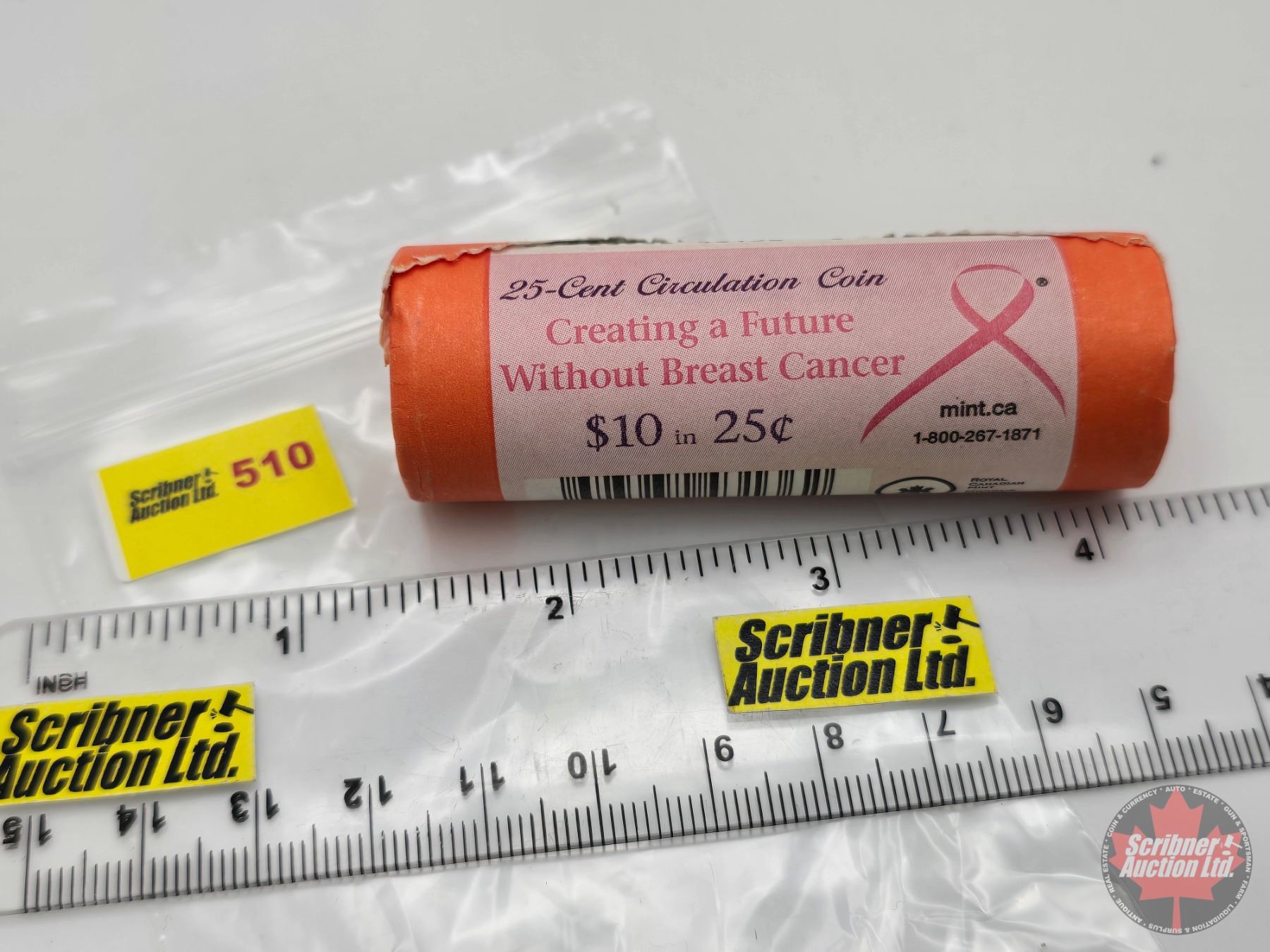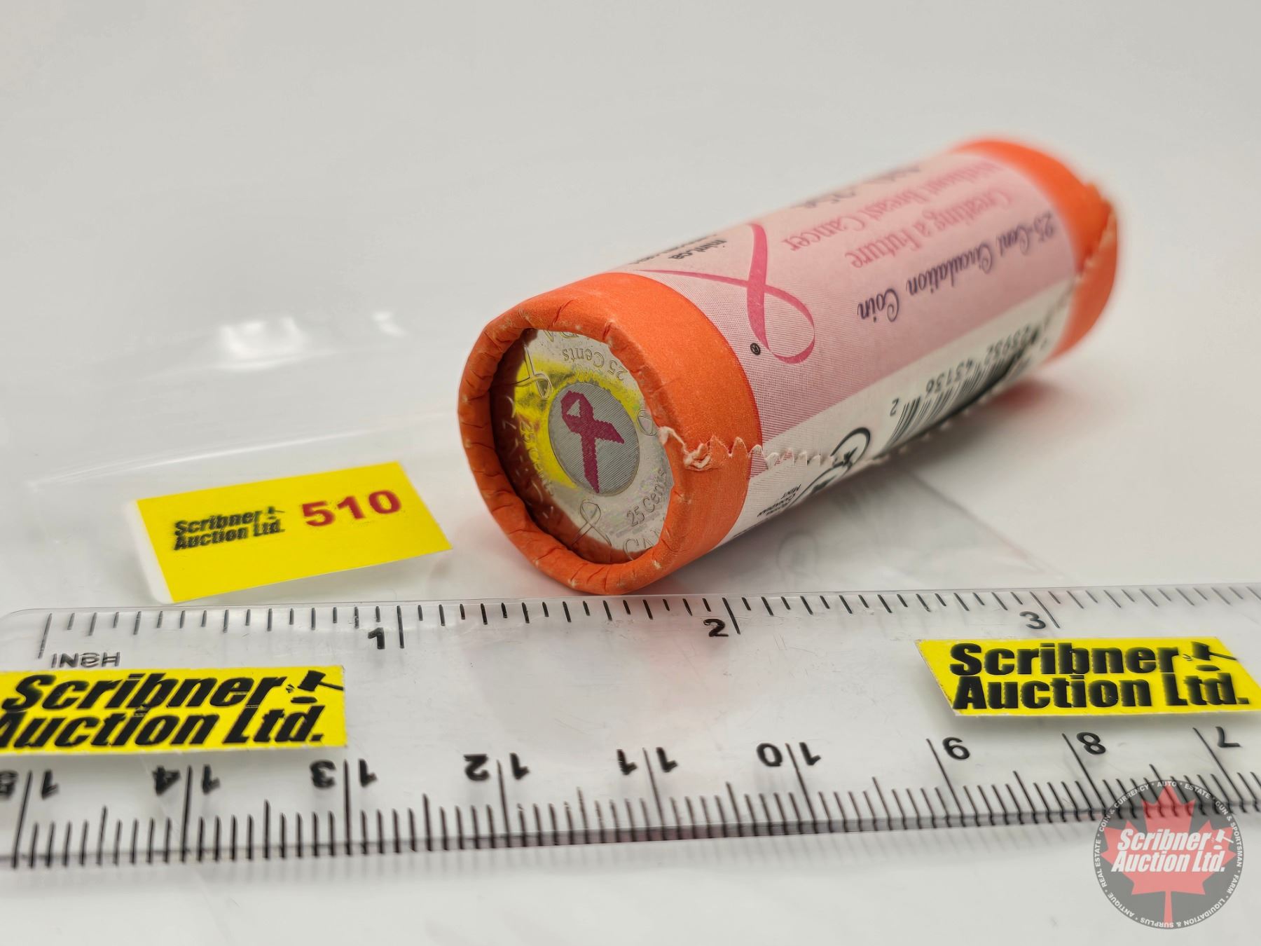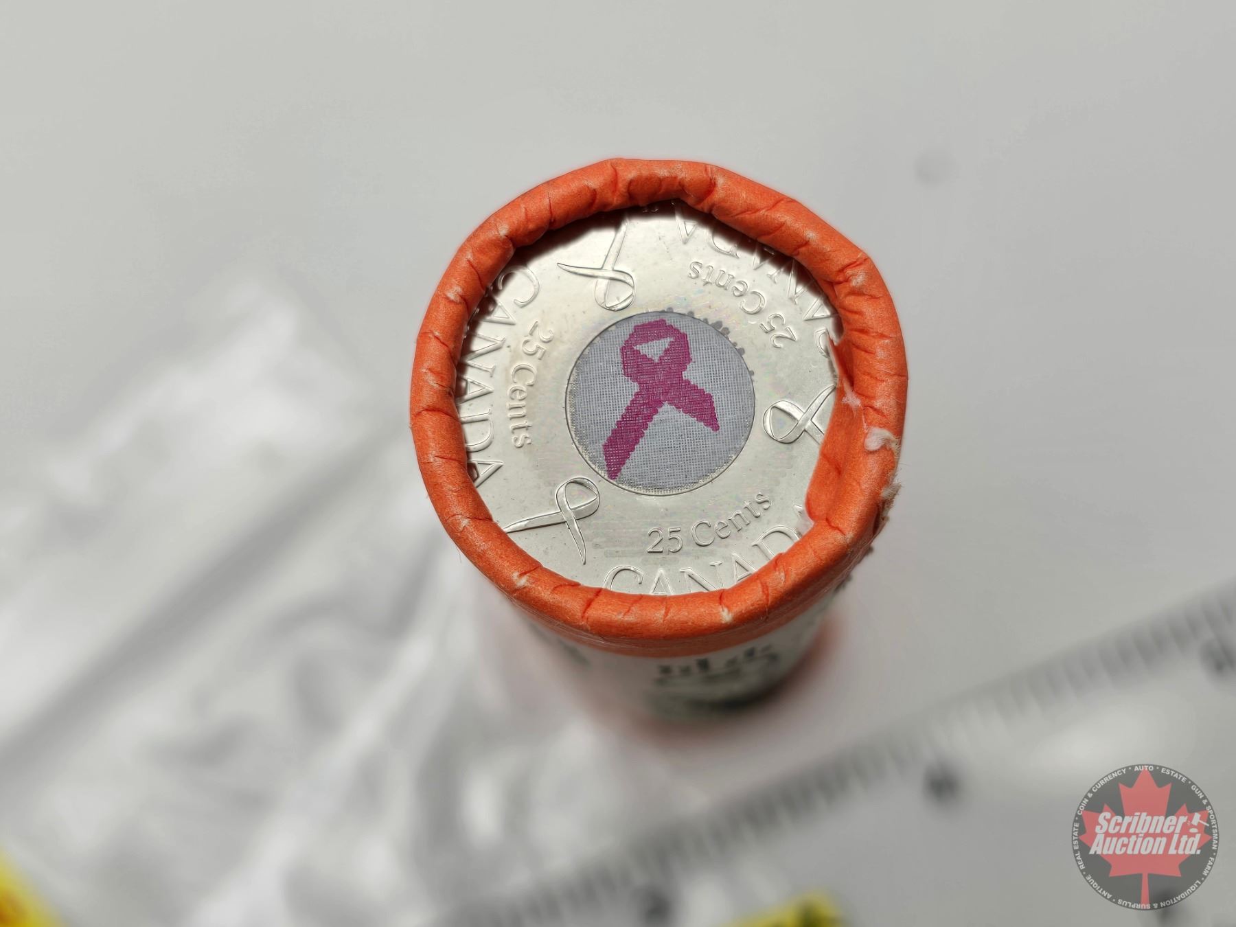 Canada Twenty Five Cent ROLL : 2006 Colorized : Breast Cancer (NOTE: Rolls not opened by the Auction Company, so quantity and contents not verified) (SEE PICS!) (Listing & Descriptions are a GUIDE ONLY and are subject to changes, errors, additions or deletions. Please use the provided pictures to satisfy yourself to the Condition and/or Grades. Please Read & Understand All Terms & Conditions for this Auction Sale.)