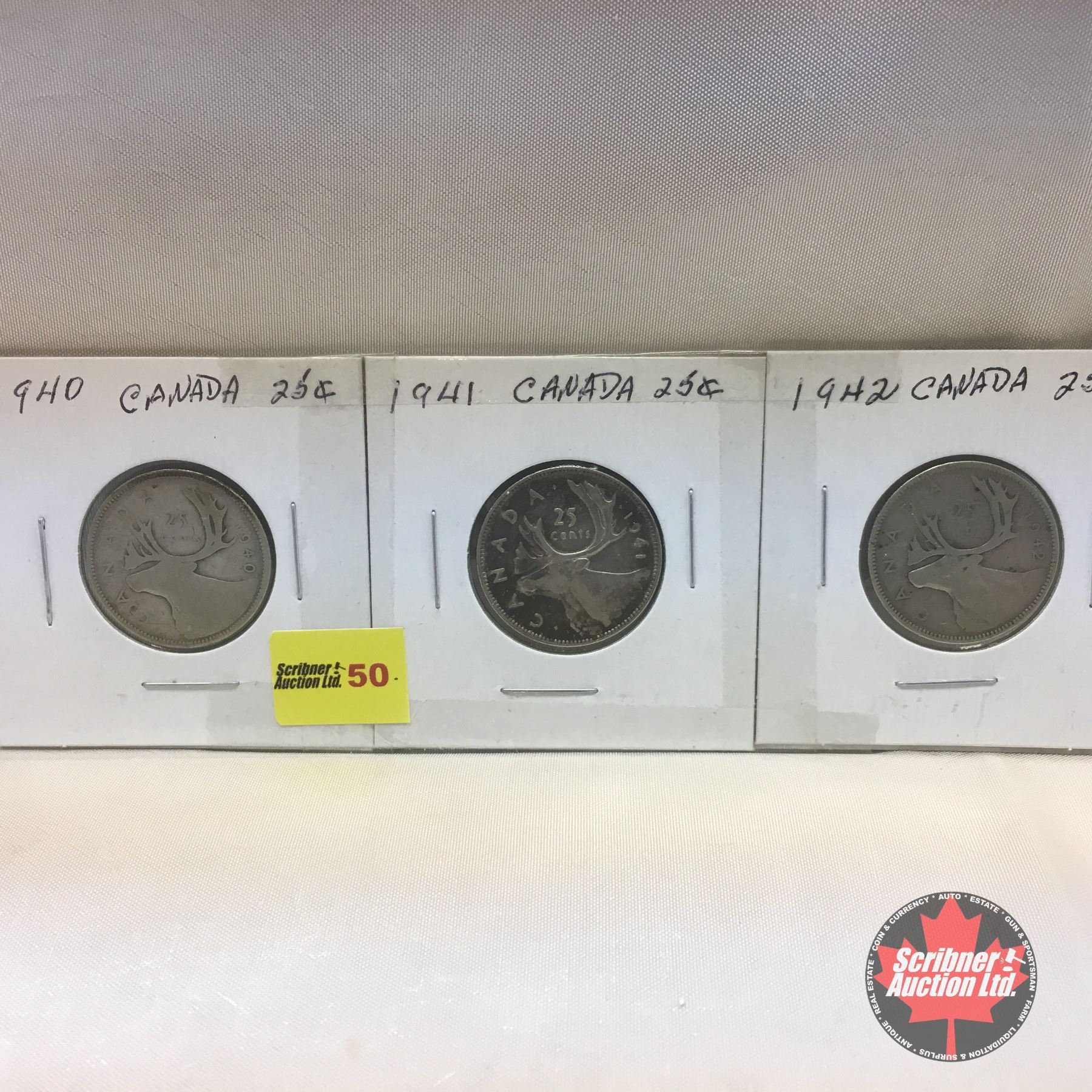 Canada Twenty Five Cent - Strip of 3: 1940; 1941; 1942