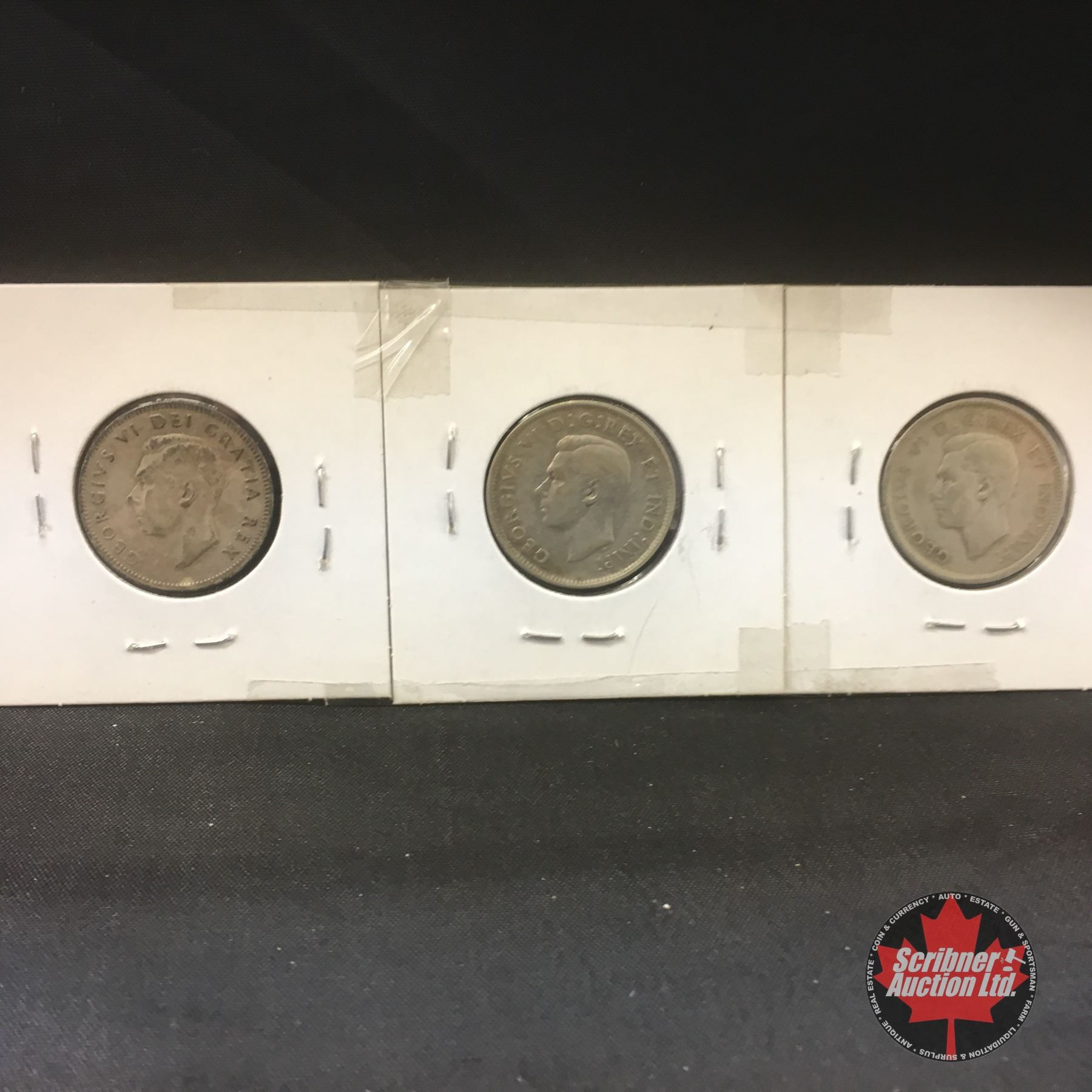 Canada Twenty Five Cent - Strip of 3: 1944; 1947ML; 1948