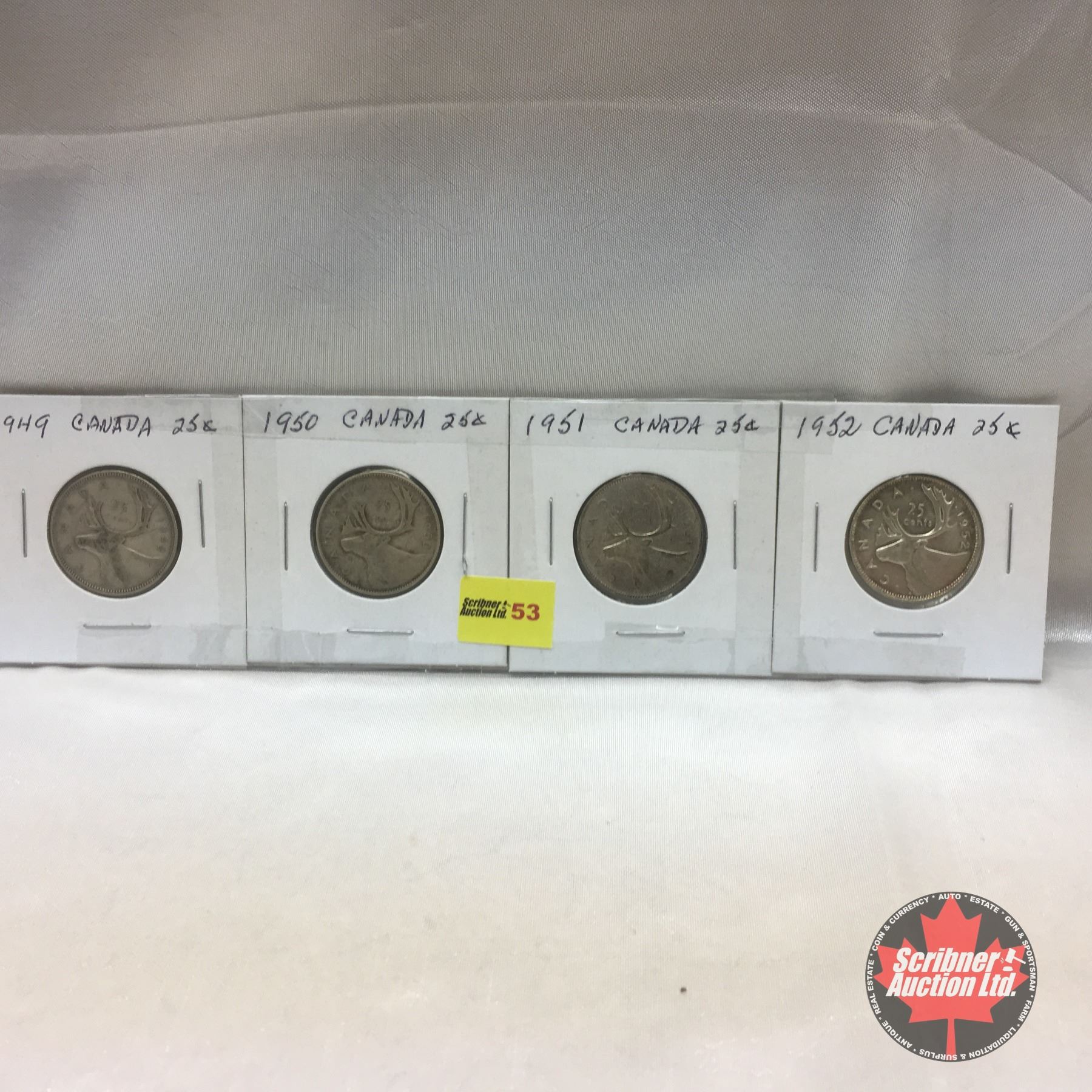 Canada Twenty Five Cent - Strip of 4: 1949; 1950; 1951; 1952