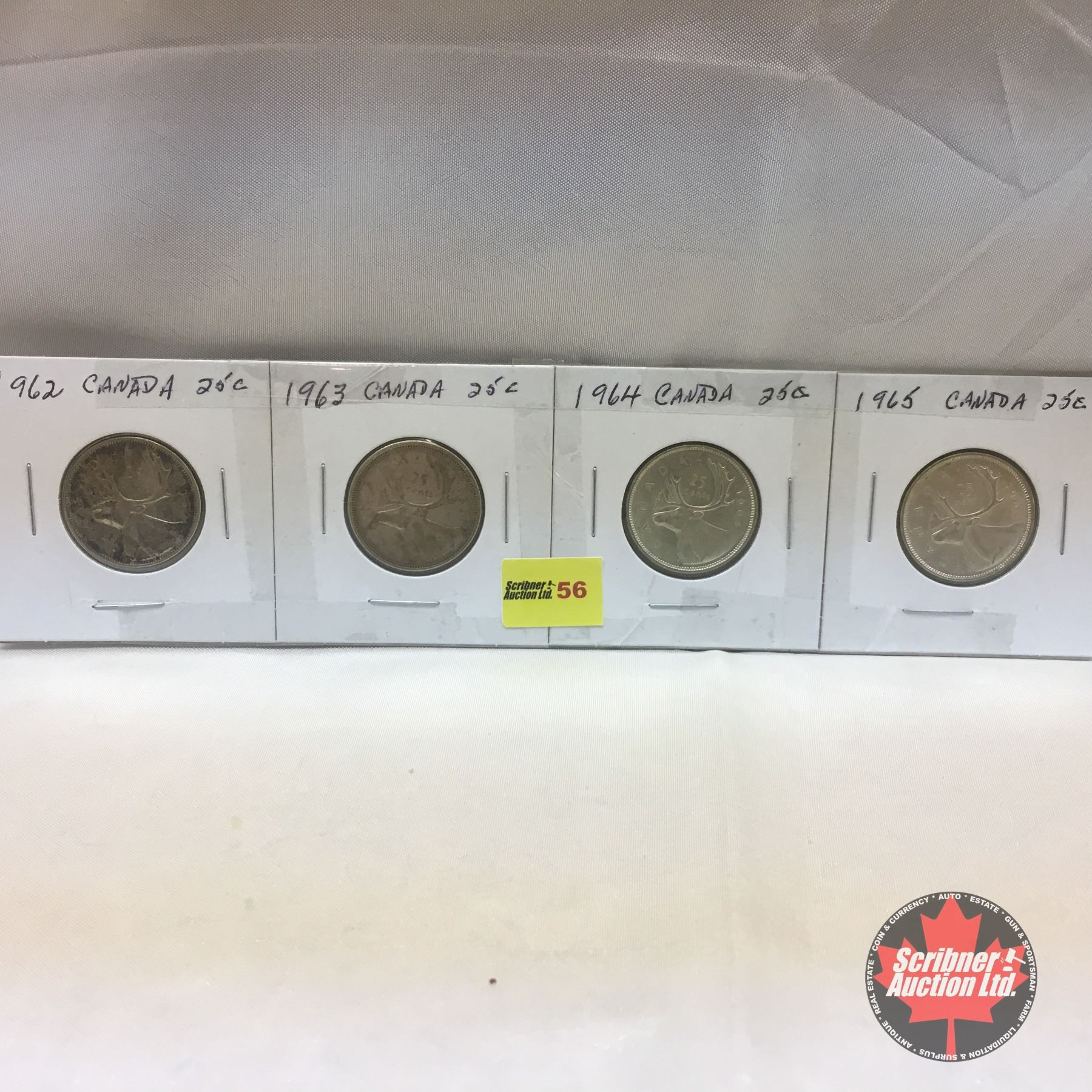 Canada Twenty Five Cent - Strip of 4: 1962; 1963; 1964; 1965