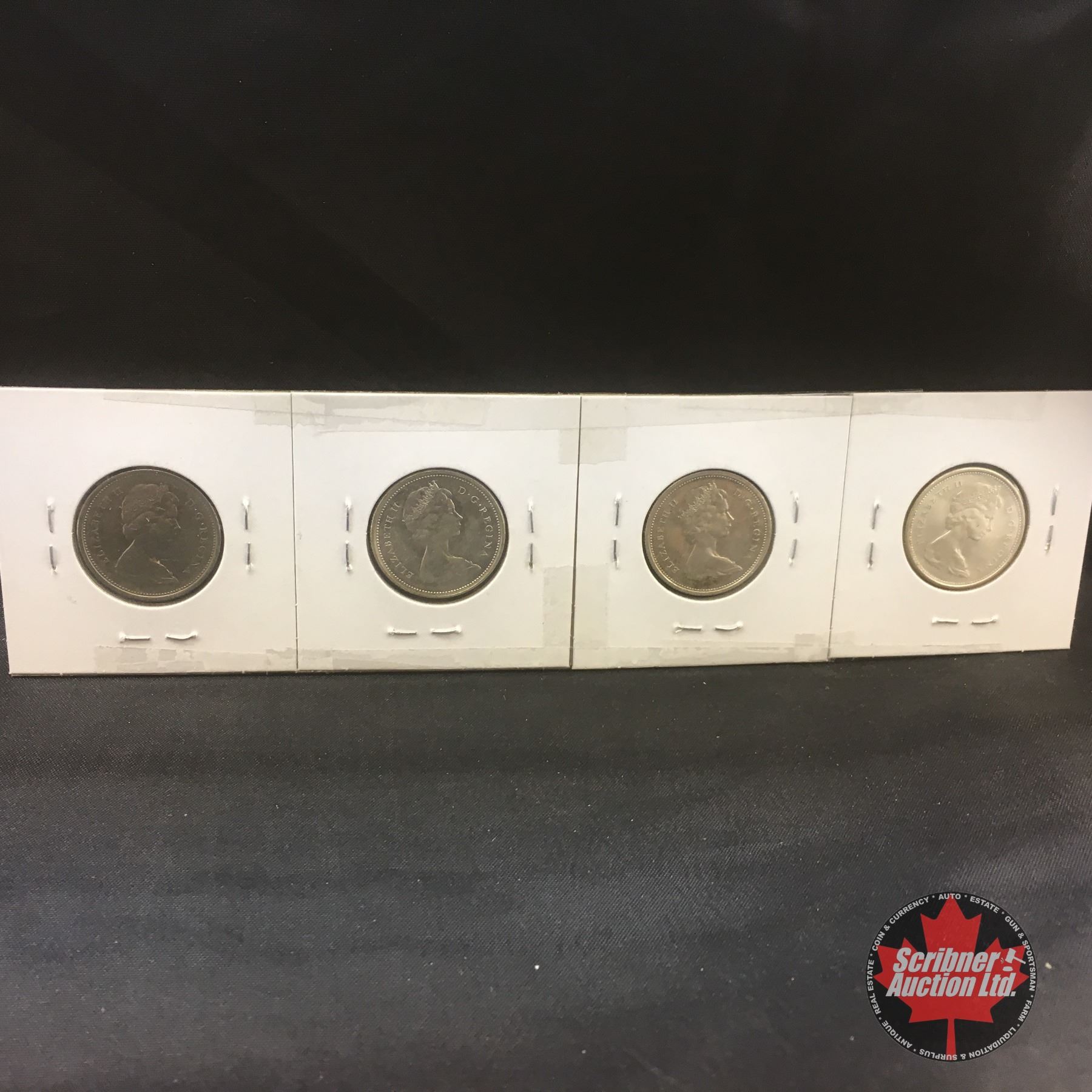 Canada Twenty Five Cent - Strip of 4: 1966; 1867-1967; 1968 (silver); 1968 (nickel)