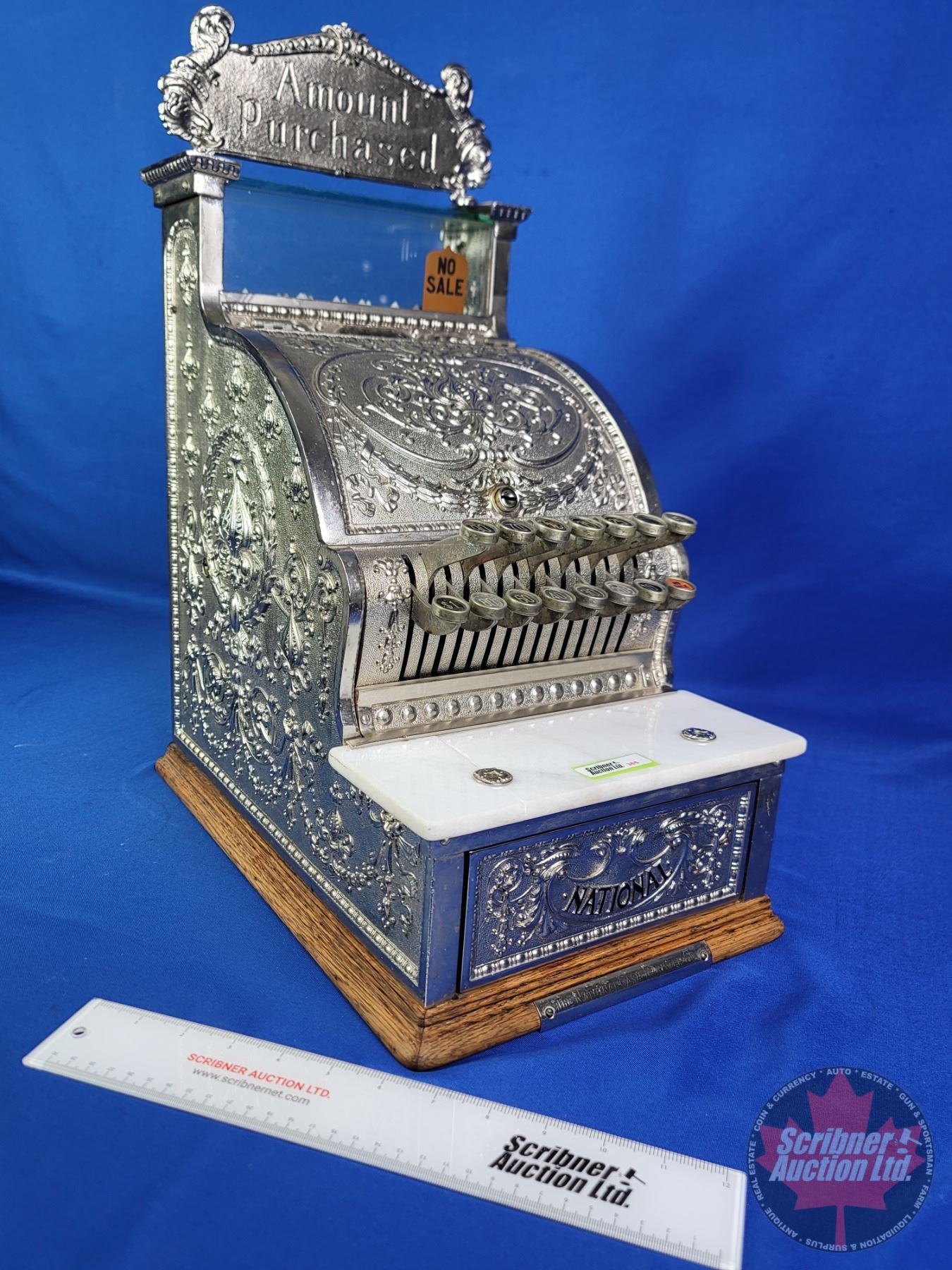 Candy Store Cash Register "NATIONAL" : Nickel Plated : Marble Ledge :