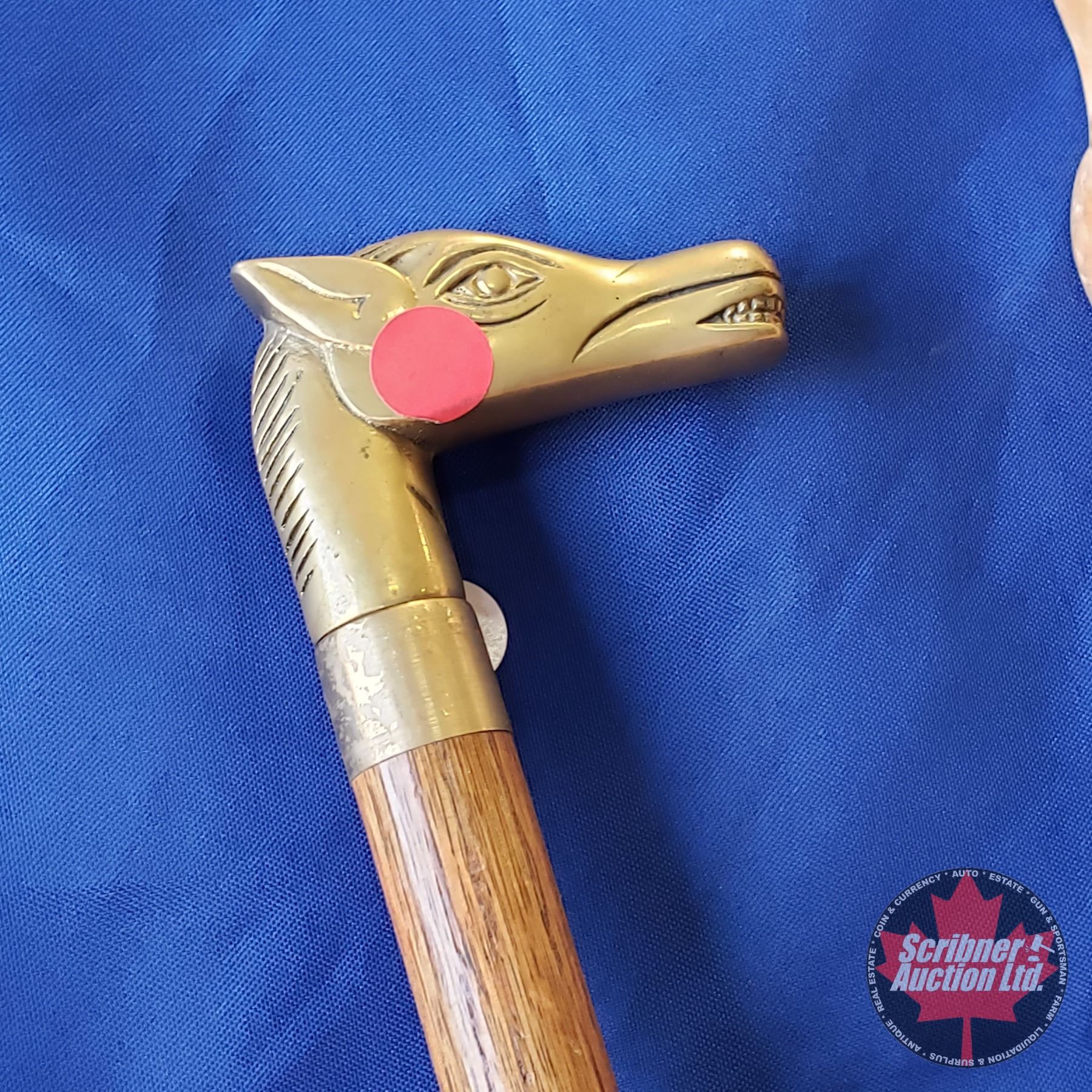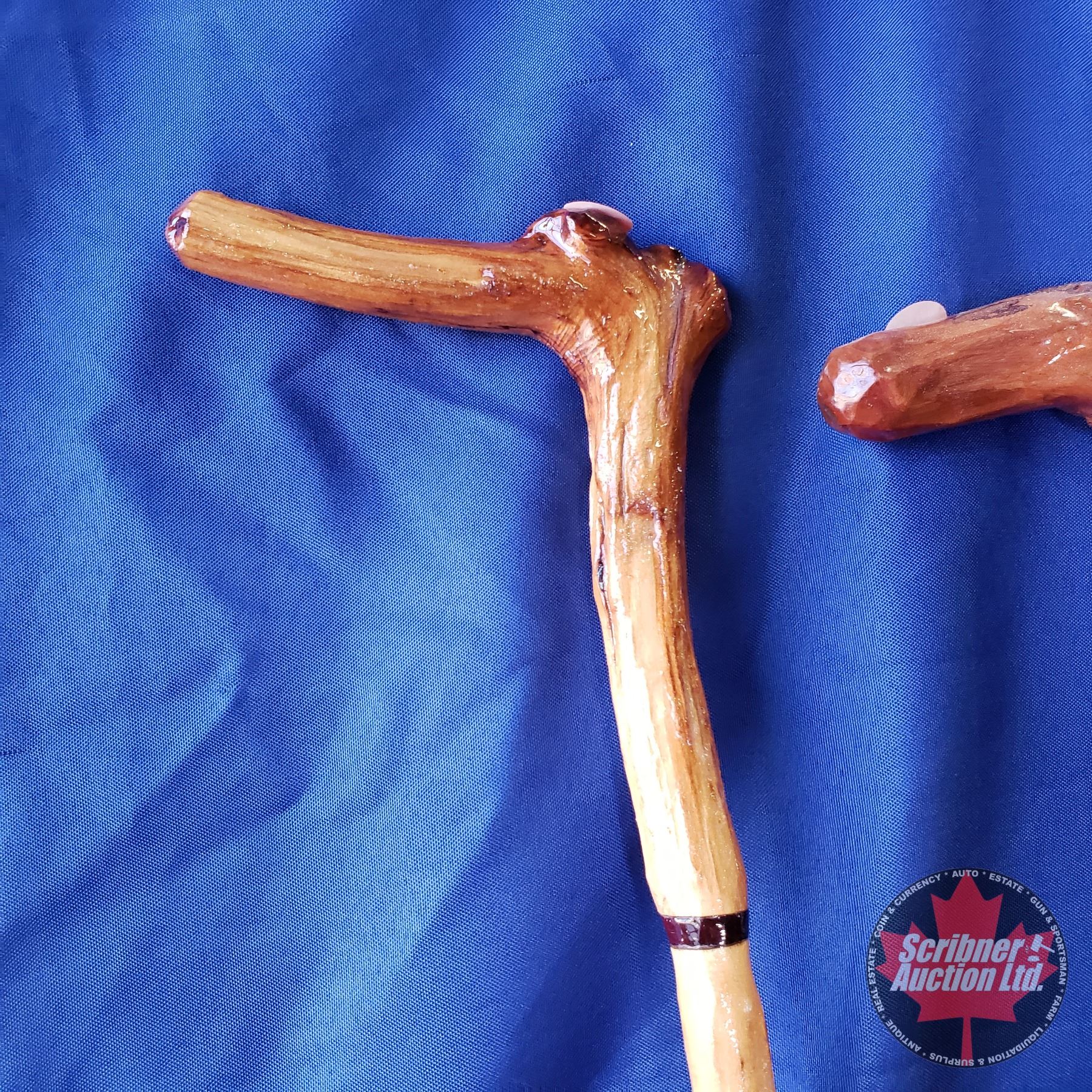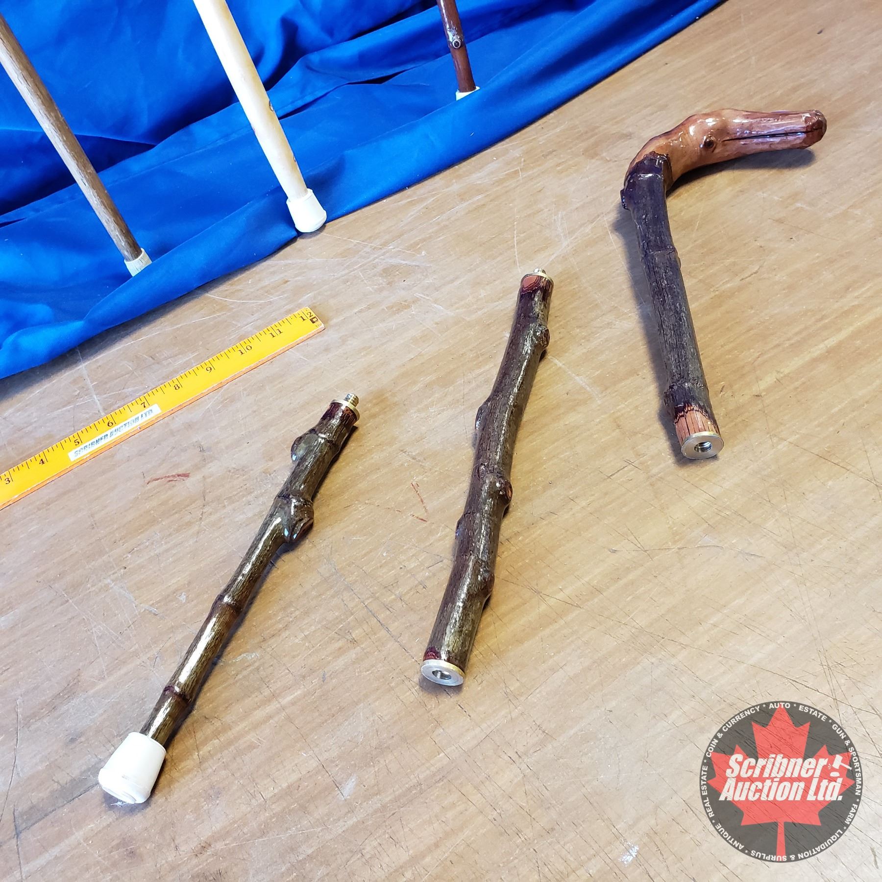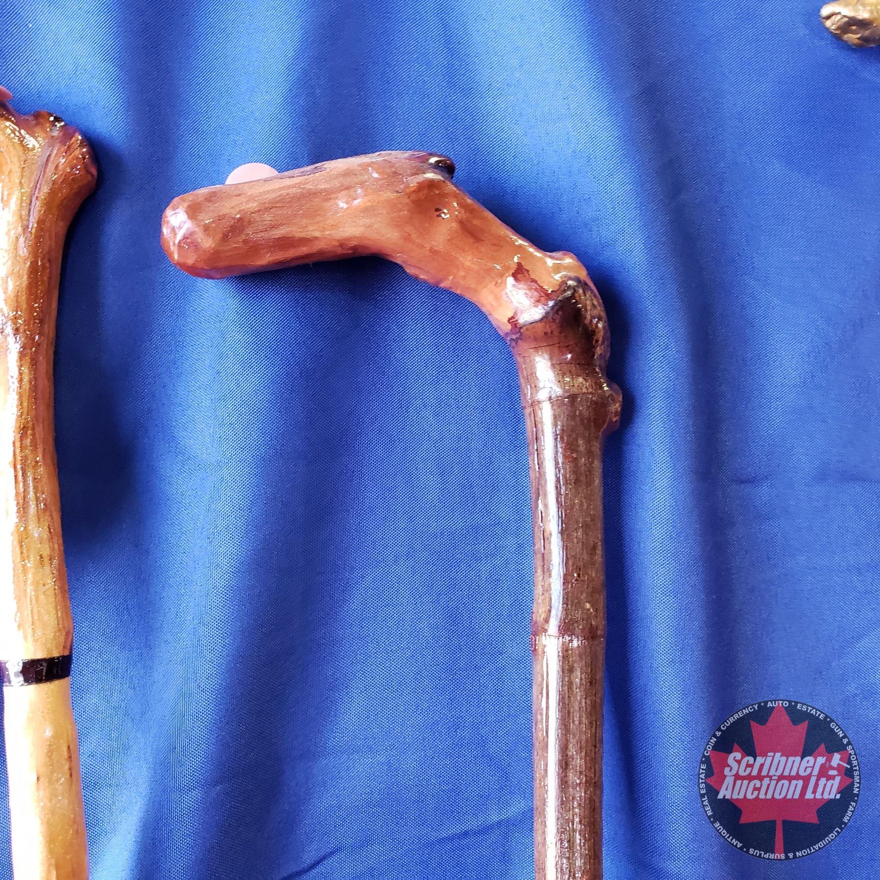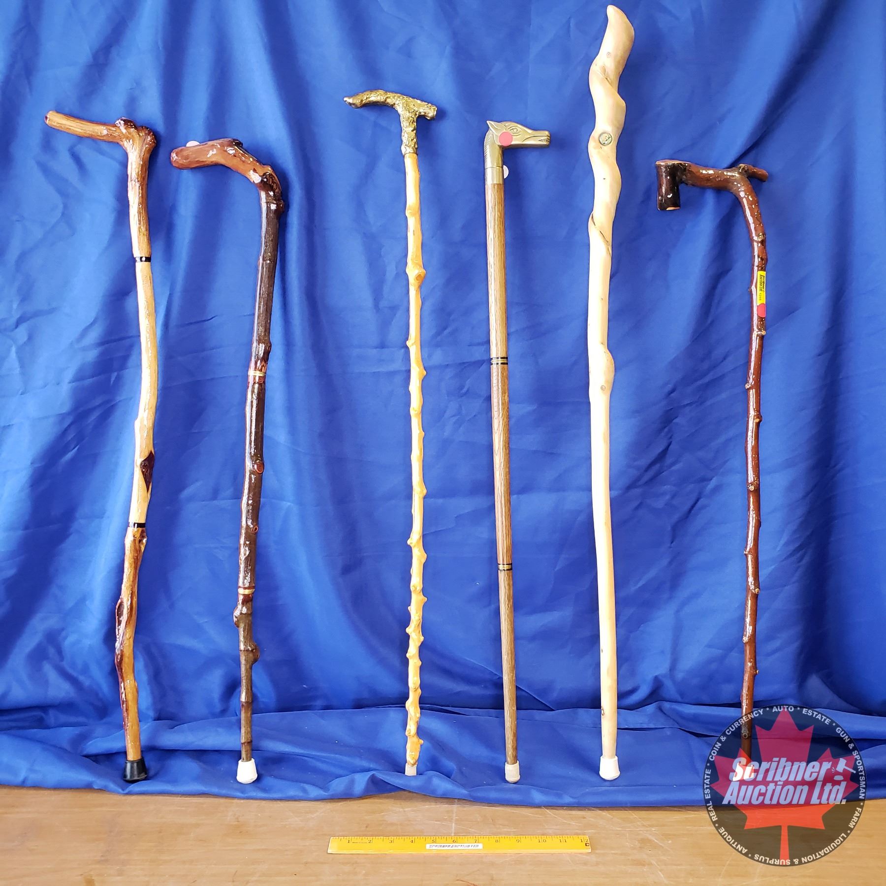 Canes (6): Diamond Willow (5 Custom by Larry Charlebois) & 1 Vintage Walking Stick Cane (comes apart w/Brass Head of Horse) (See Pics!)